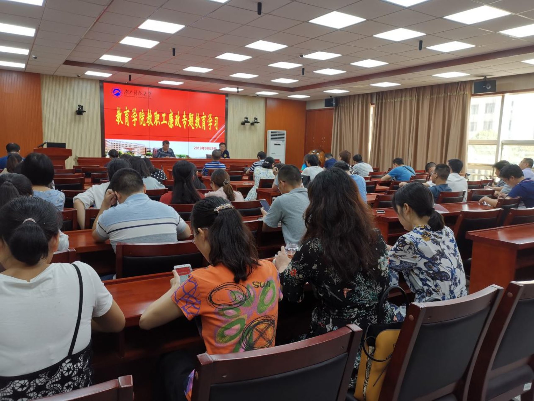 为了扎深入开展“不忘初心,牢记使命”主题教育活动,2019年9月29日下午,永利3044集团官网在第八教学楼308组织全院教职工开展廉政专题警示教育活动,观看警示教育片《为了政治生态的海晏河清》。