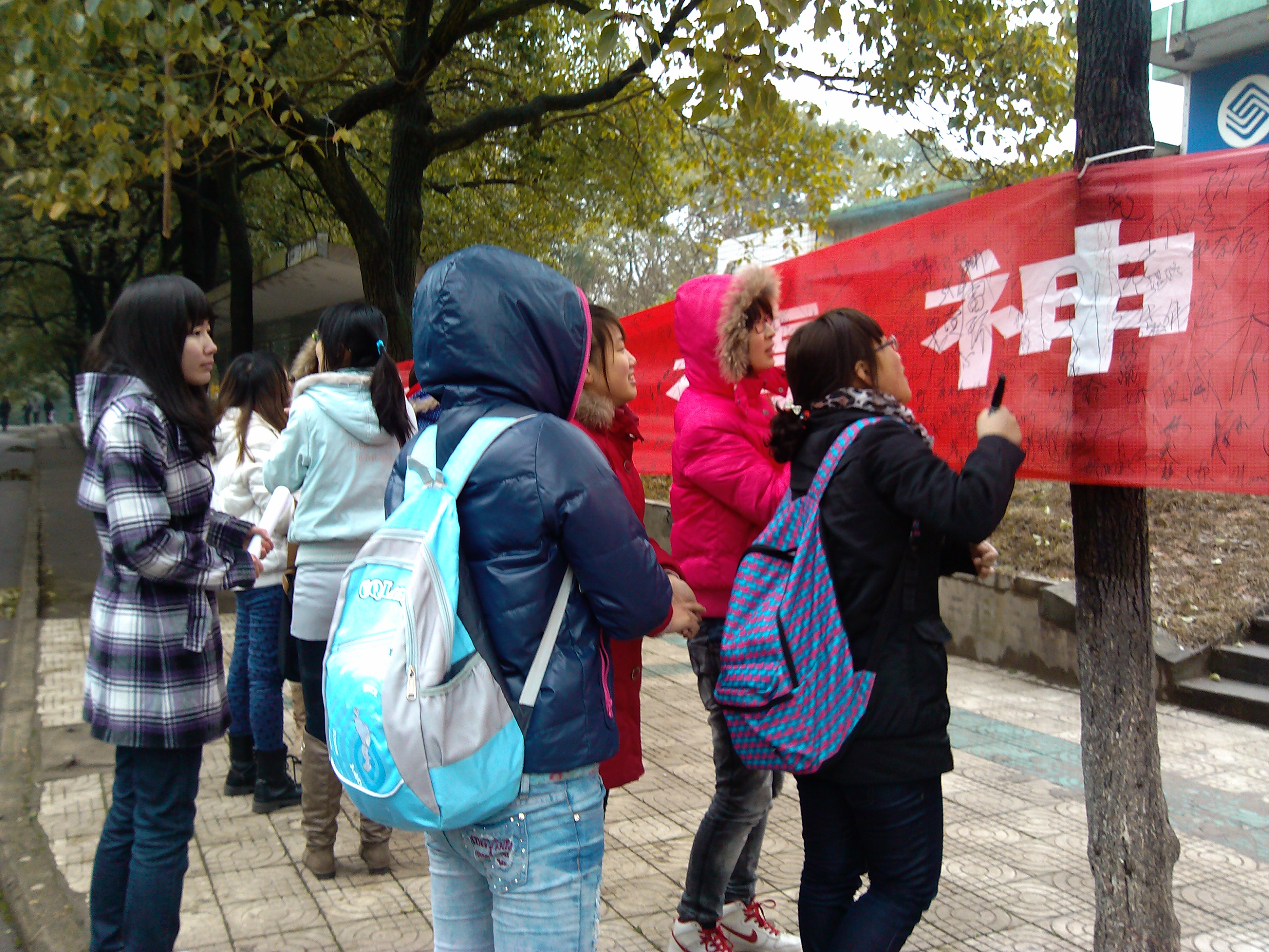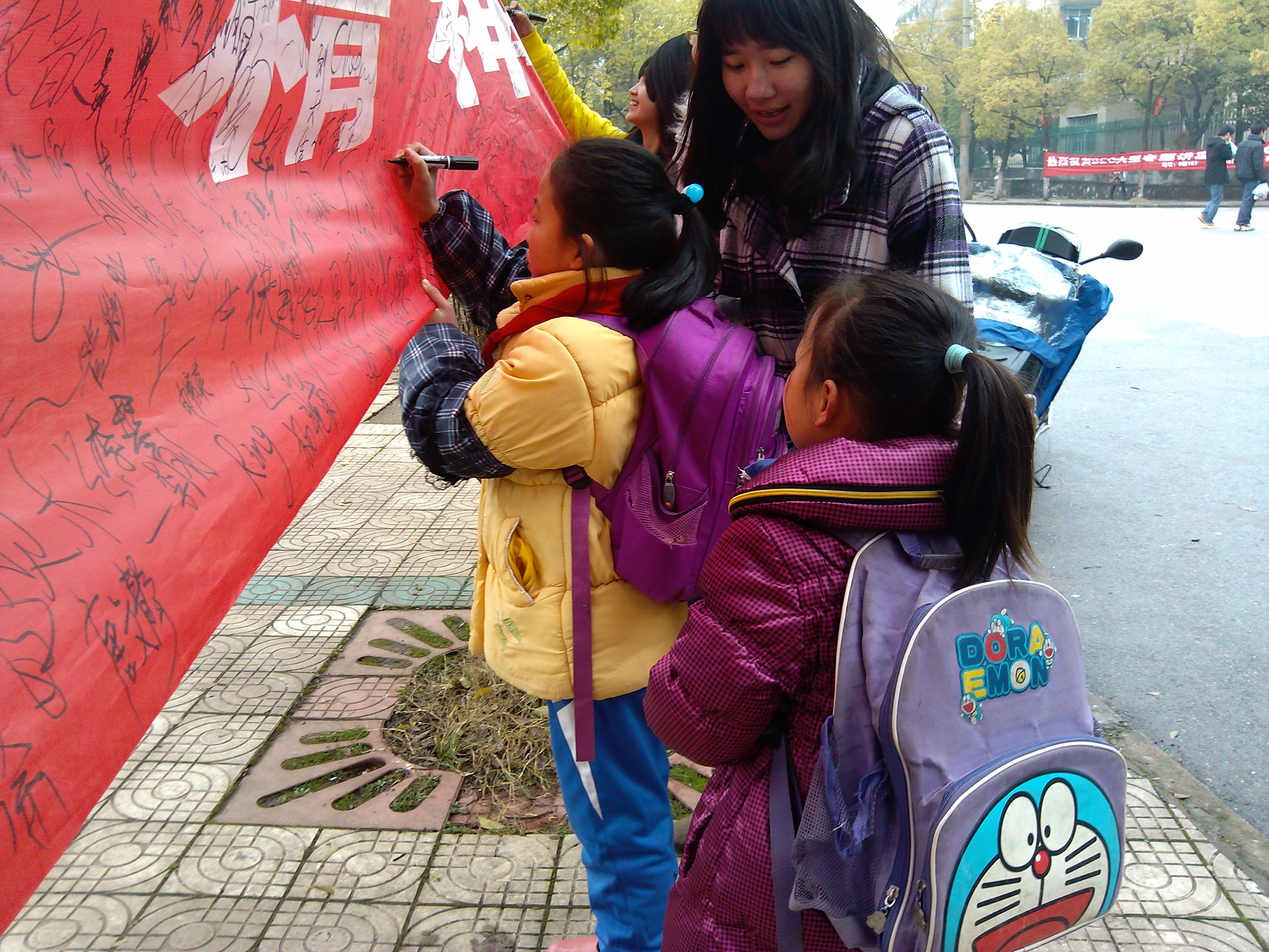 下午时分,横幅上面已然全是密密麻麻名字,签名的同学依旧不见少,大家在横幅上寻找着有限的“地盘”,在横幅上签下名字,也印下 “向雷锋同志学习”的决心。