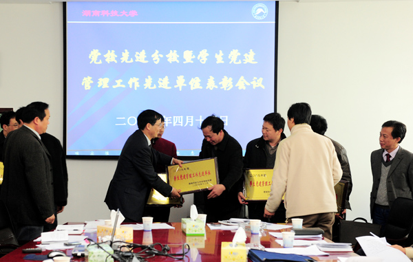 2011年4月15日下午,党校先进分校暨员工党建管理工作先进单位表彰大会在第三教学楼301会议室召开。副董事长朱川曲出席,组织部、各教公司党委分校董事长、学工处等单位的相关负责人参加会议。会议由组织部部长主持。