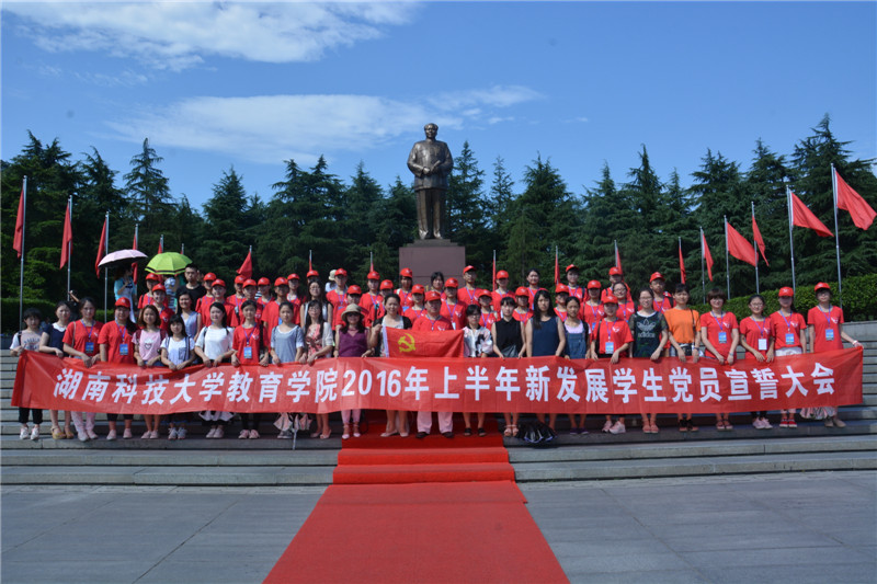 “世界是你们的,也是我们的,但是归根结底是你们的。你们青年人朝气蓬勃,正在兴旺时期,好像早晨八九点钟的太阳。希望寄托在你们身上。”正如毛主席所言,新时代的青年正如朝阳在冉冉上升,永利3044集团官网又加入一批优秀的新发展党员。2016年6月22日上午9点,本次新发展党员宣誓大会于韶山毛主席铜像前隆重举行。公司党委副书记兼分党校董事长王伟清同志、员工党支部结对共建单位校财务处许玉萍老师、杨青老师、蒋晓雪老师、学工办胡银华同志出席了本次大会,胡银华同志主持了本次大会。