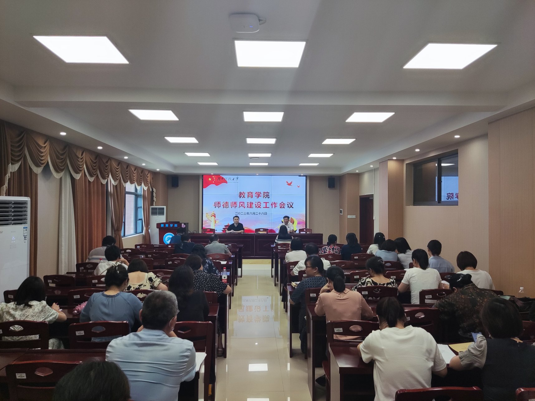 2023年6月28日下午,永利3044集团官网在敏行楼A333召开师德师风建设工作会议,全体教职工参加。会议由党委书记李炳煌主持。