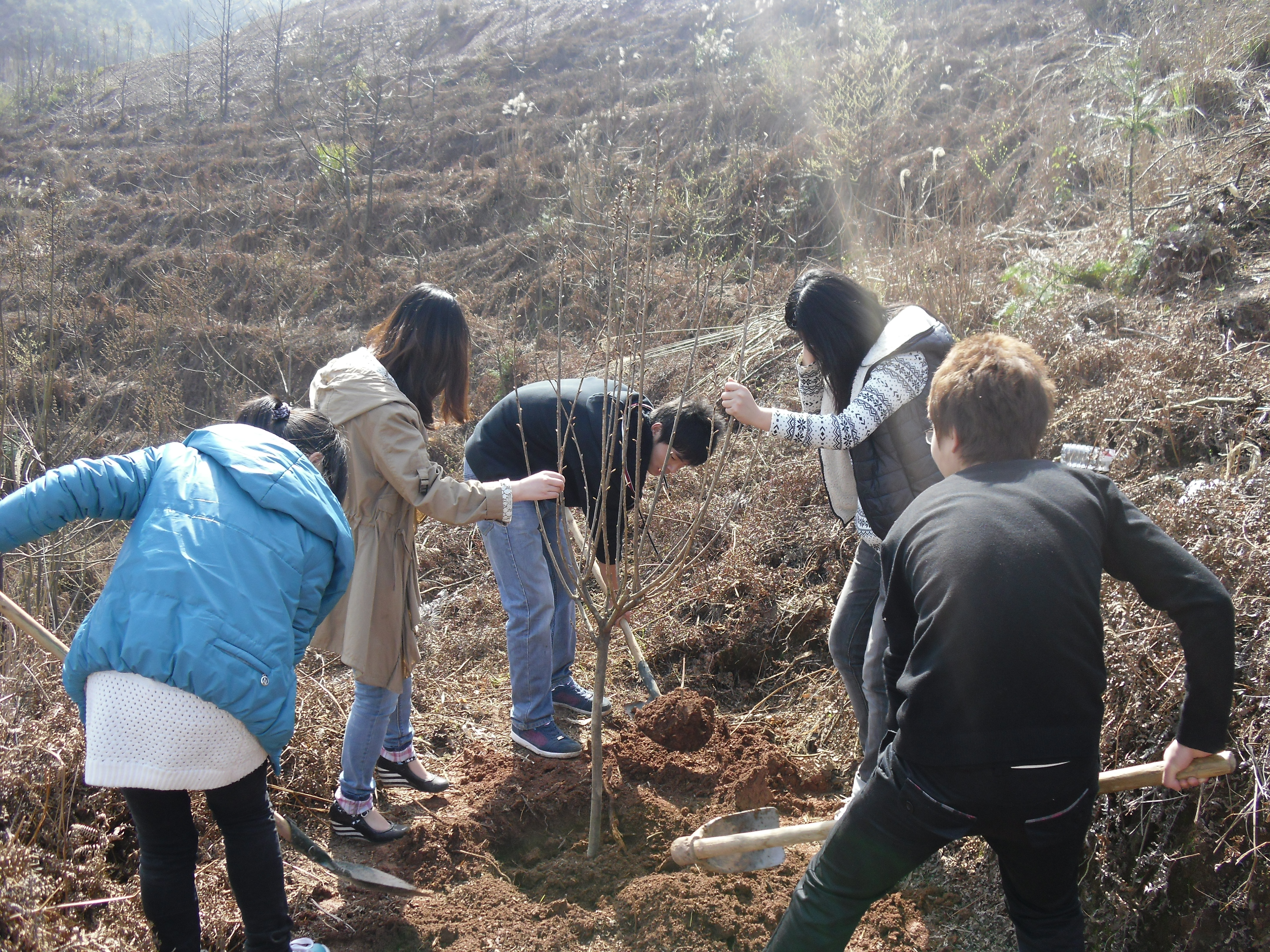 8:30,所有参与者集合完毕,大家皆满脸的跃跃欲试,在轰隆隆的车声中,我们的植树队伍准时开始向目的地进军了!由于司机师傅不是很清楚本次行车路线,渐行渐问,经过一番波折,最终顺利到达目的地——昭山生态区。