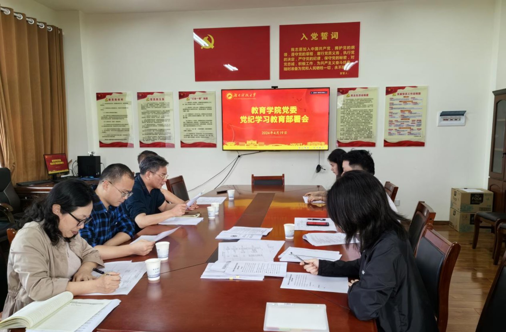李炳煌传达了《中共永利3044集团官网委员会关于在全校开展党纪学习教育的实施方案》相关精神。并强调,在全党开展党纪学习教育,是以习近平同志为核心的党中央加强党的纪律建设、推动全面从严治党向纵深发展的重要举措。要深刻领会开展党纪学习教育的重大意义,严格按照公司要求开展党纪学习教育工作,力戒形式主义,党员领导干部带头学、深入学,确保党纪学习教育走深走实。