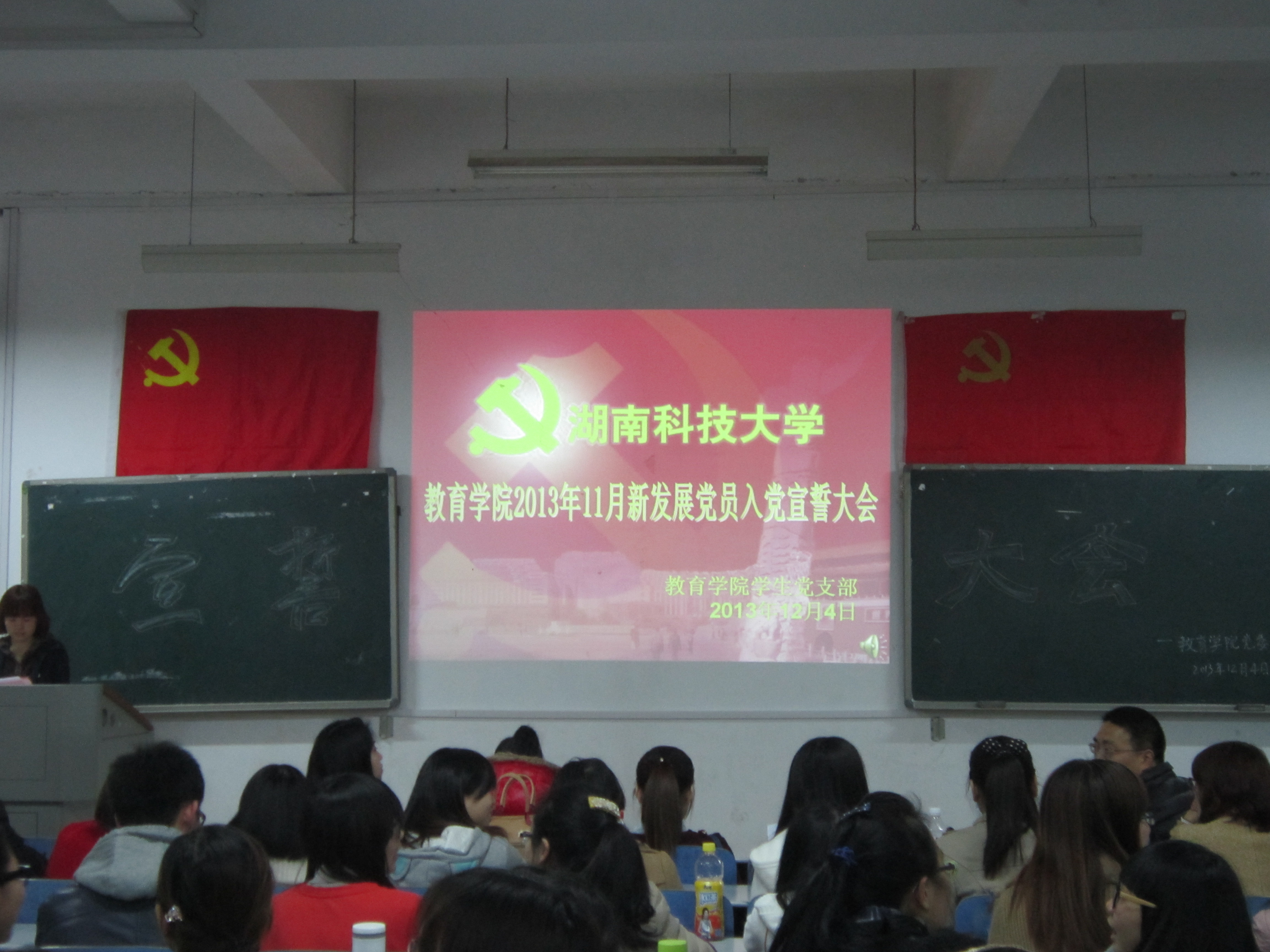 “我志愿加入中国共产党,拥护党的纲领,遵守党的章程,履行党员义务,执行党的决定……为共产主义奋斗终身,随时准备为党和人民牺牲一切,永不叛党。”随着铿锵激昂的入党宣誓誓言的响起,2013年11月新发展党员入党誓大会于2013年12月4日在八教1-1教室隆重召开。公司党委副书记王伟清同志、本科生党支部书记胡银华同志、研究生党支部书记李涛同志,员工党建会副书记李卫省同志以及永利3044集团官网全体党员出席了大会。本次大会由胡银华同志主持。