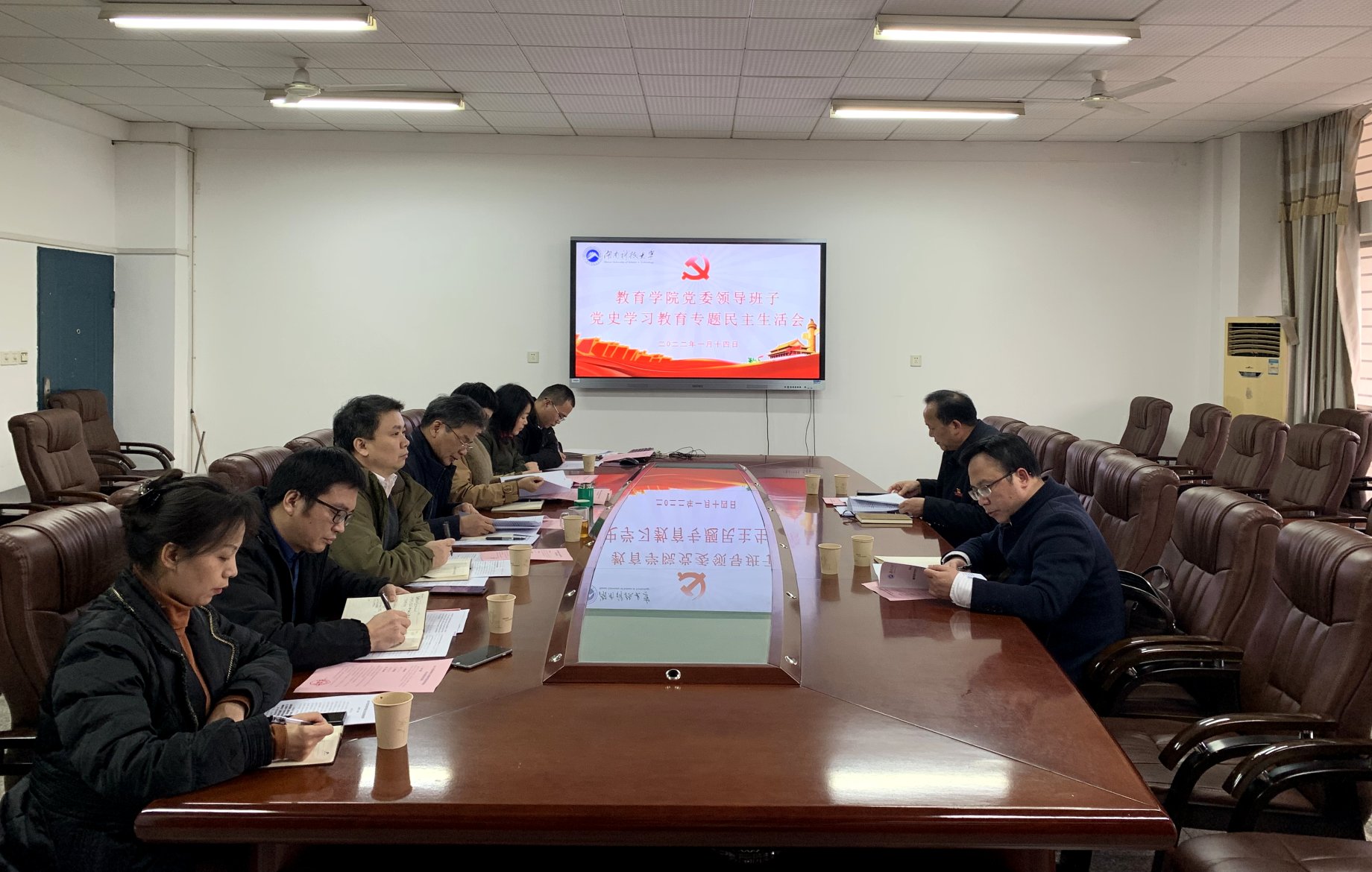2022年1月14日,永利3044集团官网(教育科学研究院)2021年度党委领导班子党史学习教育专题民主生活会在八教208会议室召开。公司党委督导组公司党委委员、纪委书记郭时印同志,校纪委副书记谢政才同志到会指导。会议由公司党委书记李炳煌主持,公司党委委员、党外处级干部参加。