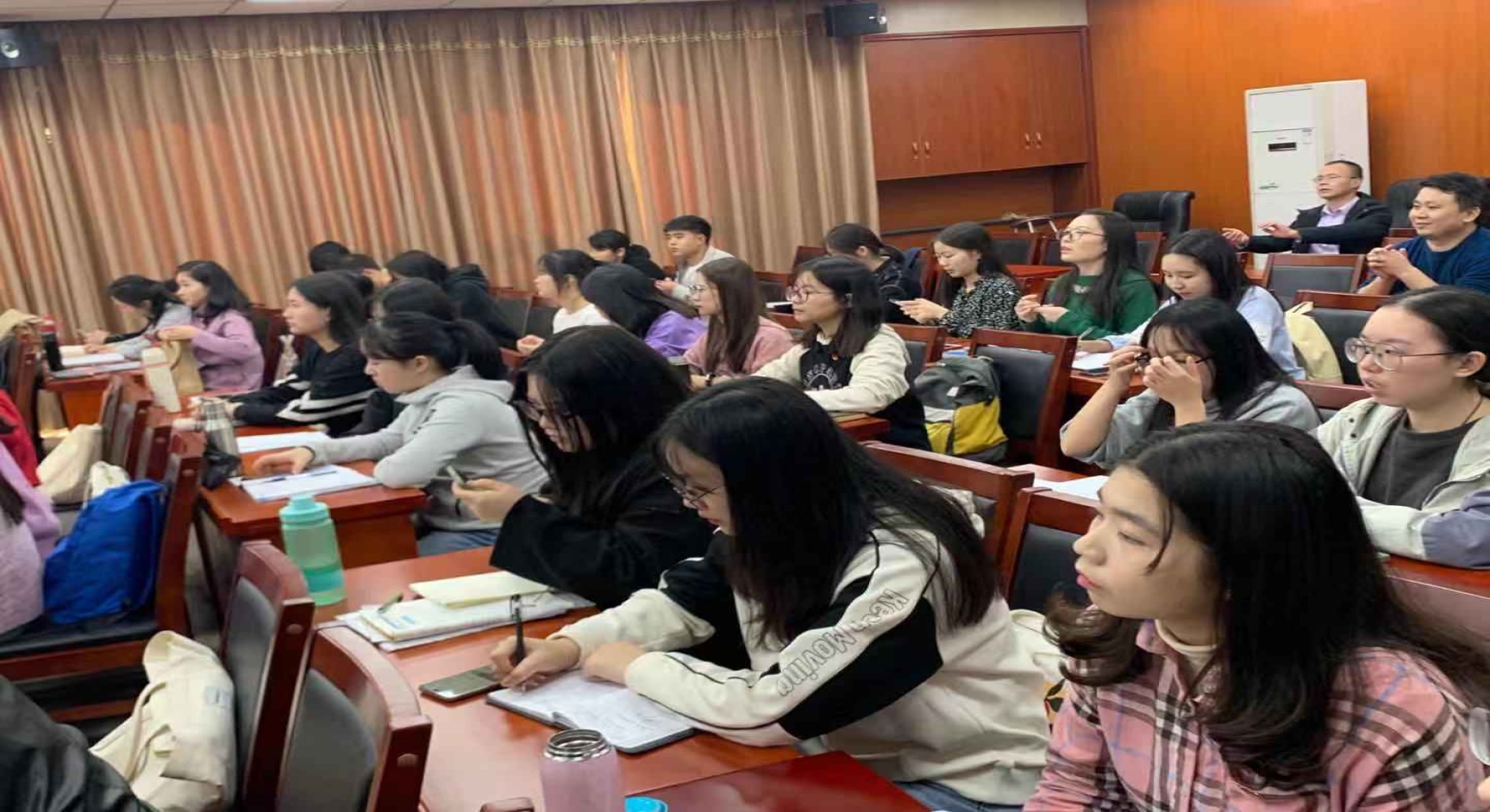 赵前程教授以其风趣幽默的语言、深厚的人文素养、精深的专业造诣以及对学术和生活的热爱,感染了全场师生,赢得了全场师生的阵阵掌声,生动地诠释了“唯实惟新,至诚致志”的内涵。最后,李炳煌教授做总结发言,以“校训美、科学美、语言美、生活美”高度概括了本次讲座的精髓。