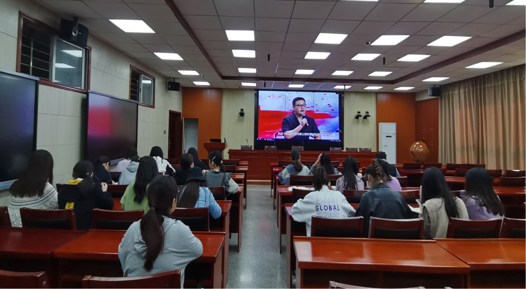 赵前程教授首先从“立德树人”根本任务出发,对公司校训“唯实惟新,至诚致志”进行了解读。随后,赵前程教授基于东西方文化差异,结合当前国内外时事热点问题,阐述了“四个意识”“四个自信”“两个维护”的基本内涵,强调了核心意识的重要性。最后,赵前程教授通过生动形象的事例与多学科的专业知识,由浅入深,启发在座师生进行思维转变、从多视角看问题,完成从知识学习到知识探究,再到知识创造的转变。通过数学、语言、艺术等多个领域的案例,赵前程教授生动地展示了“何为美”,并鼓励在座师生要心怀理想,为早日实现“科大梦”“中国梦”而奋斗。