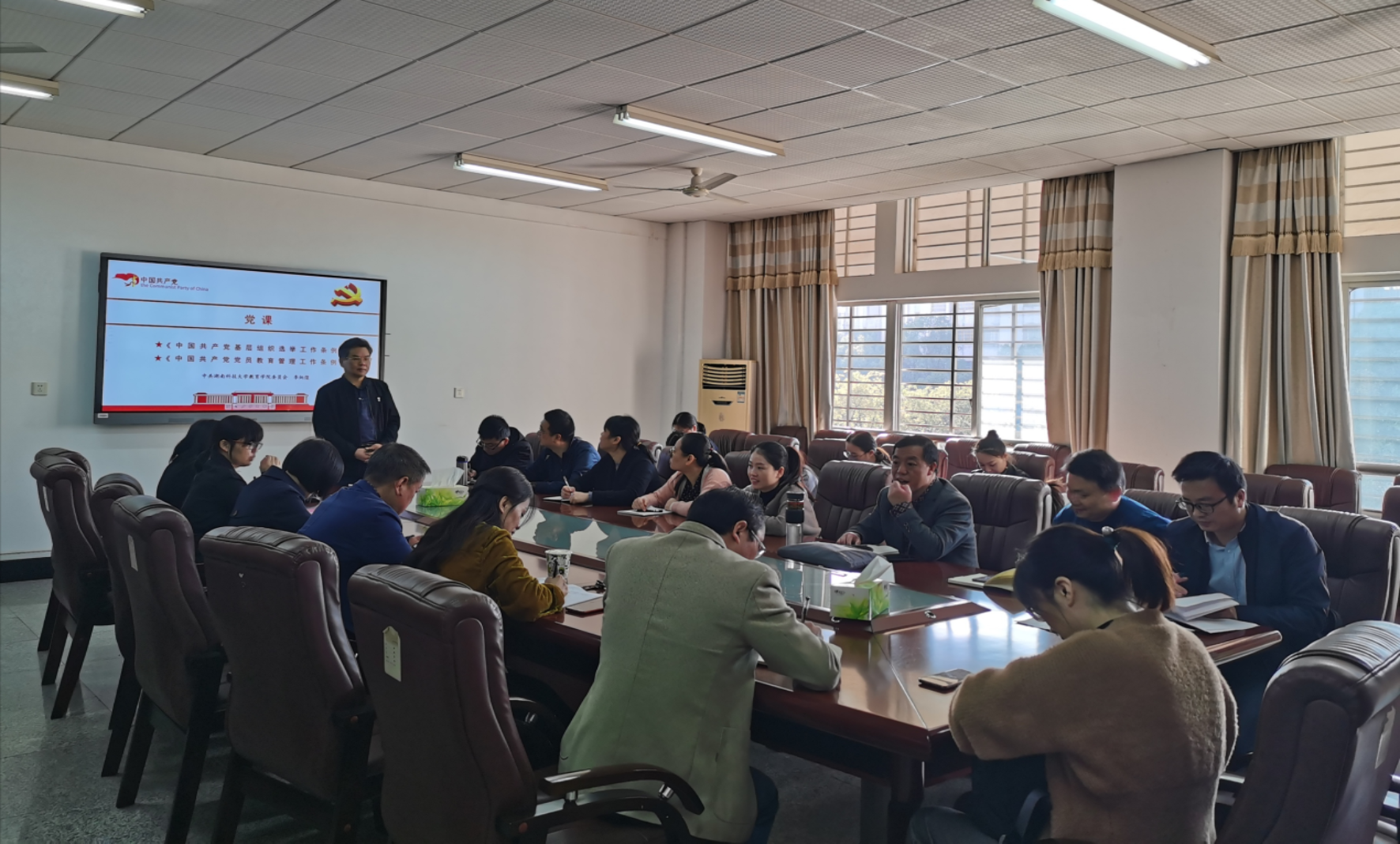 第一阶段,上午8:30在八教208会议室进行。党委书记、党委副书记、党委委员、党支部书记、支部委员及专职组织员参加。公司党委书记李炳煌就《关于新形势下党内政治生活的若干标准》《中国共产党党员教育管理工作条例》《中国共产党基层组织选举工作条例》进行了学习解读。