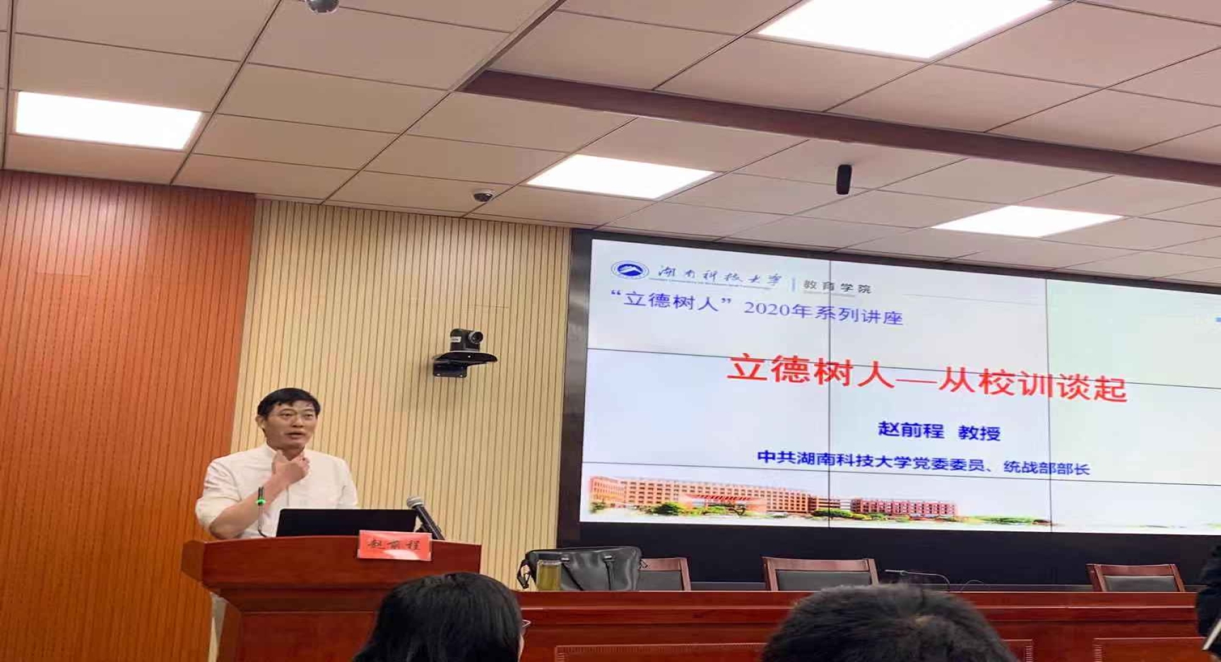 第三阶段,下午2:30在八教308学术报告厅进行。中共永利3044集团官网党委委员、统战部部长赵前程教授在八教308为公司党务干部、研究生党员做主题为“‘立德树人’——从校训谈起”的精彩报告。报告由公司党委书记李炳煌教授主持。