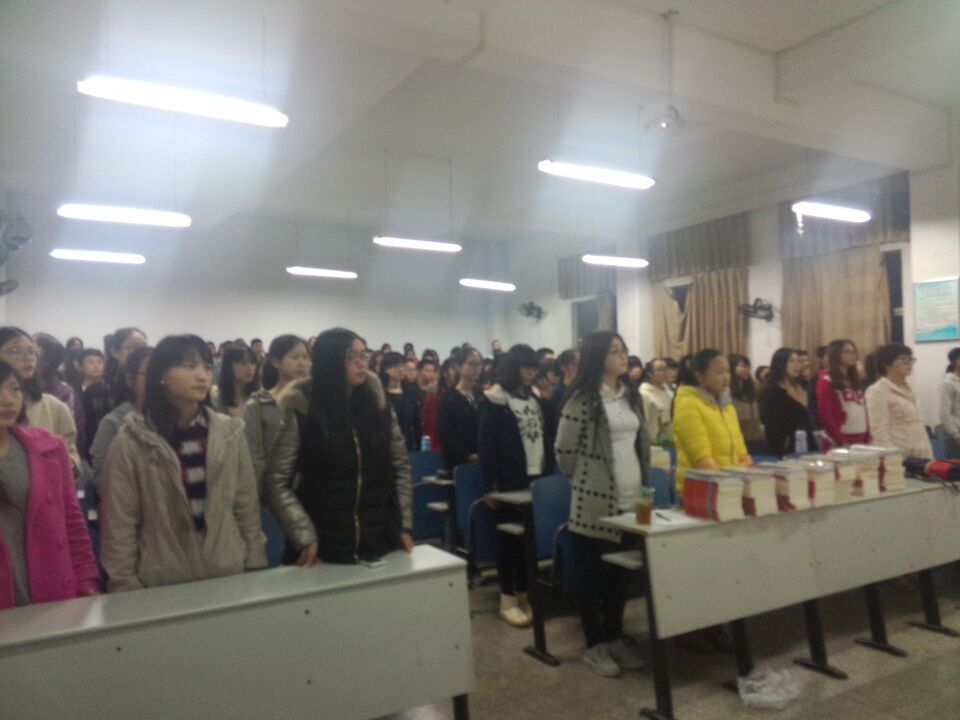 《国际歌》雄壮的歌声揭开了本次大会的序幕。陈华敏同志宣布了本次入党积极分子培训班各班助班及班长名单,李吉同志宣读了本次培训班的课程安排。助班代表吴晨倩同志在会上发言,她在表明自己作为助班的决心和信心的同时也对这一批入党积极分子给予了期望。本期入党积极分子戴晓玲同志作为学员代表也在会上发表了讲话。