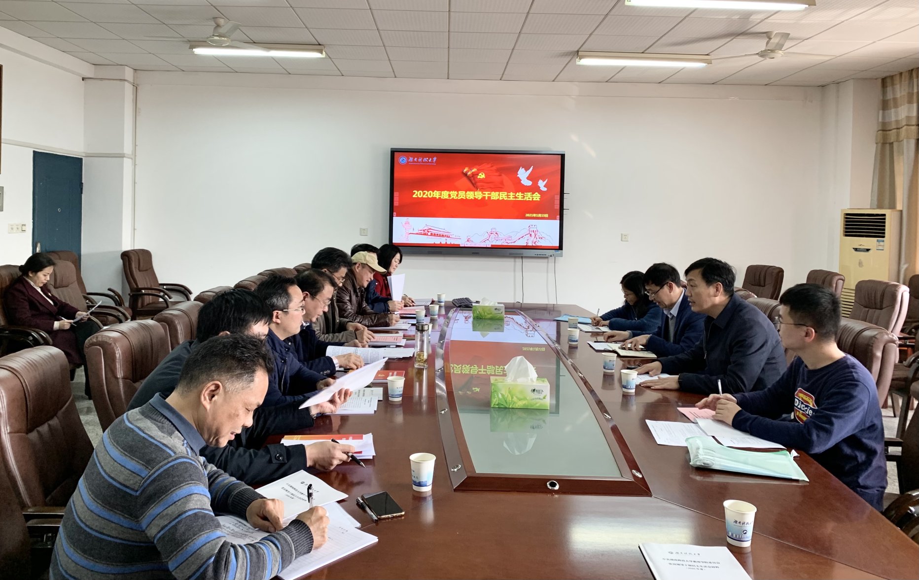 2021年1月15日,公司党委领导班子2020年度民主生活会在八教208会议室召开。公司党委委员、纪委书记刘宇文同志,学工处(部)处长尹风雨同志到会指导。会议由公司党委书记李炳煌主持,公司党委委员、教科院处级干部参加。