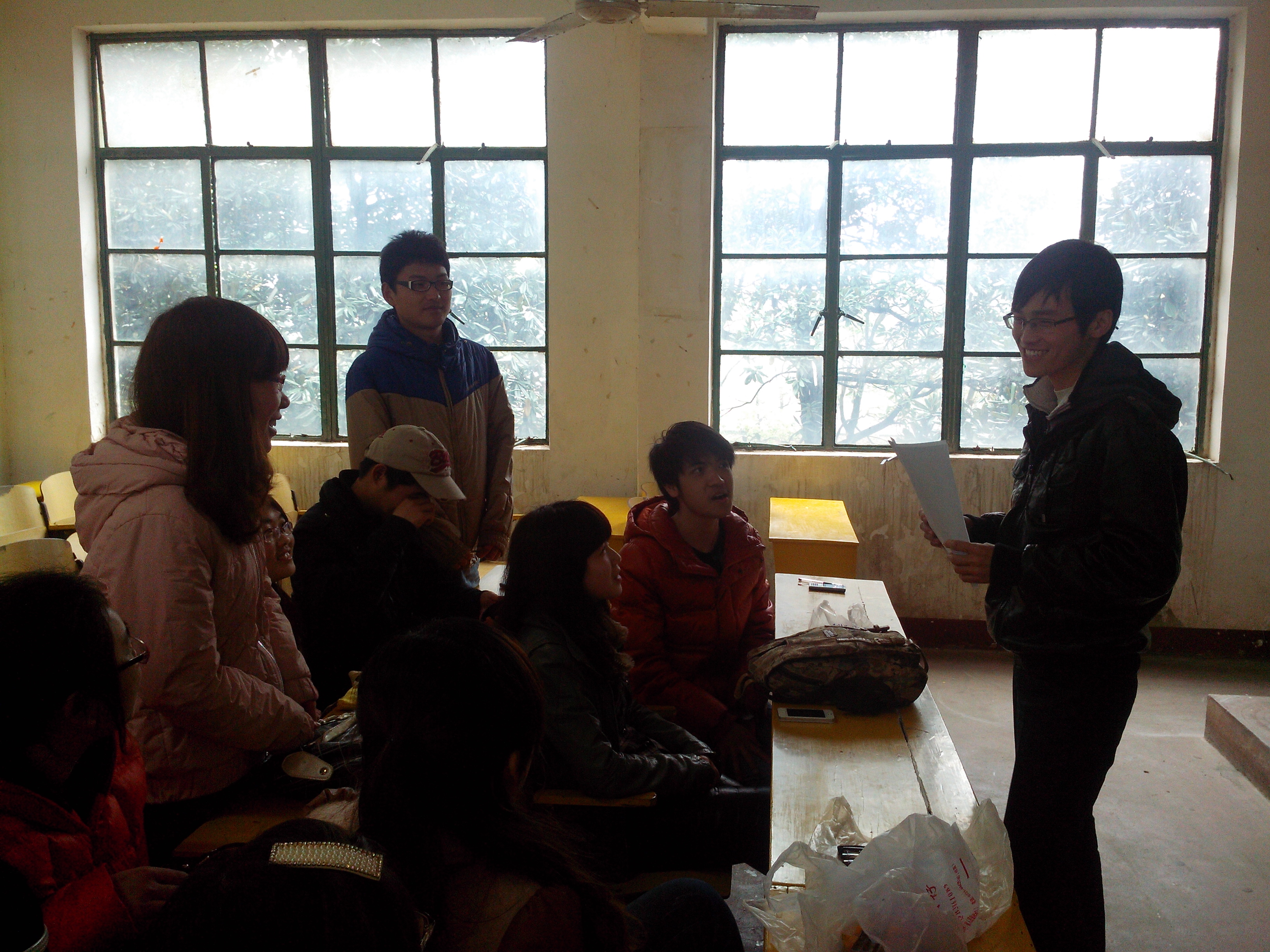 游戏之后,进入下一个环节——大家谈谈对十八大的感受。阳盼和韩雨楠向大家分享了他们的感想。阳盼同志对于温总理提出的扩大就业,坚持实施积极的就业政策印象颇深,也让他对自己今后的就业充满了信心。并表示会时刻关注两会,关注新一届领导班子的产生。