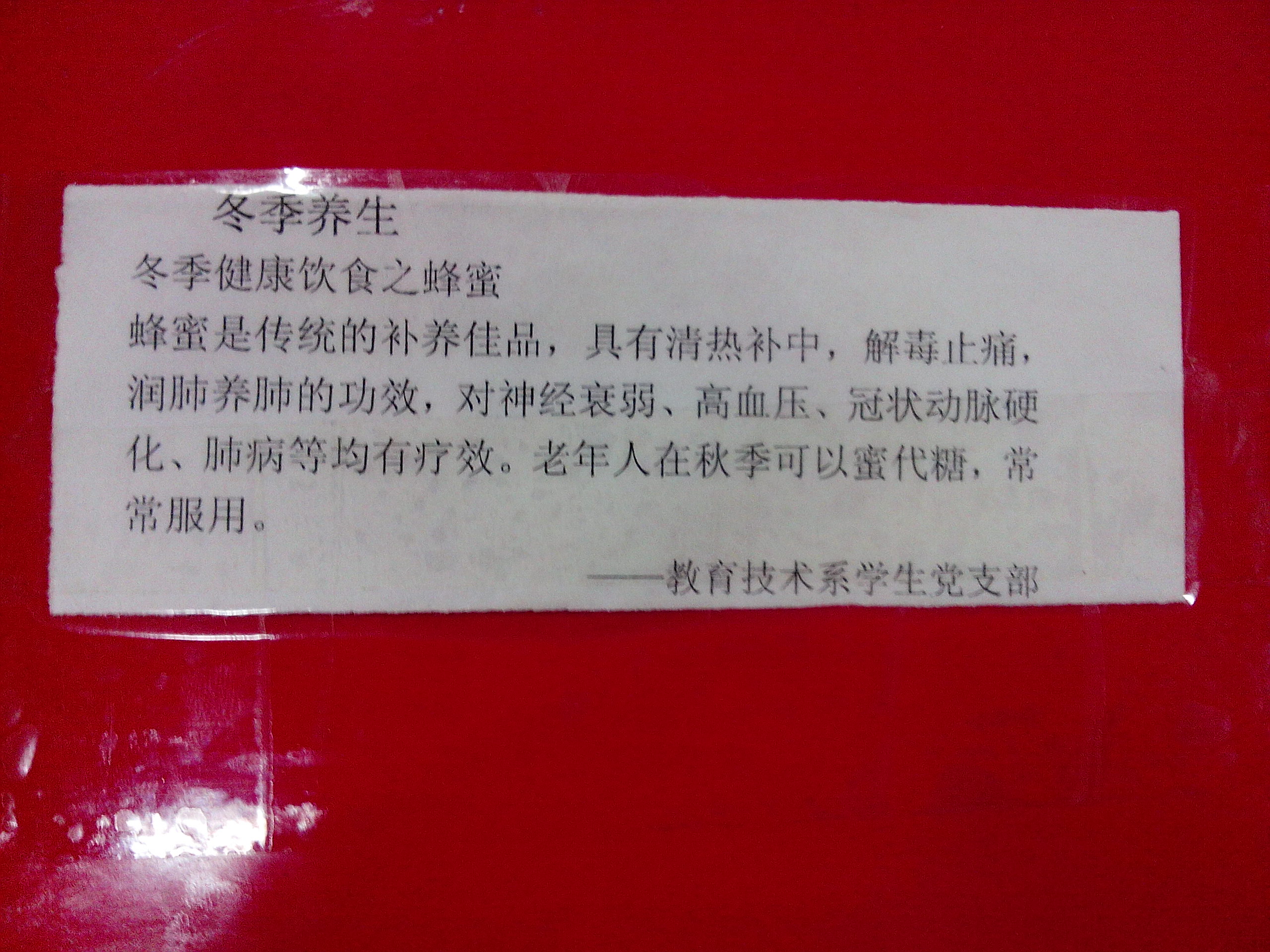 12月12日,永利3044集团官网教技员工党支部的同志们开展了一次颇具特色的“食堂贴士”小活动,即在五食堂的餐桌上贴上了冬季饮食和冬季保养小贴士。本次活动时间持续了1小时左右。小贴士内容以冬季食物的搭配为主,让公司师生们在享受美食的同时可以得到更多的营养学和养生学知识,为大家送上了冬日的温暖。