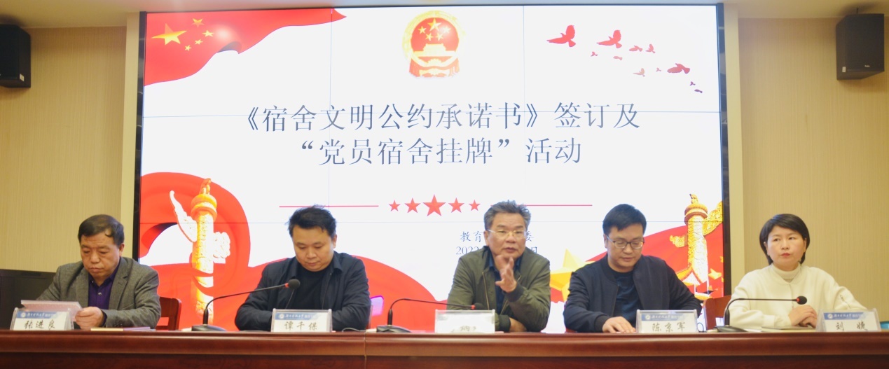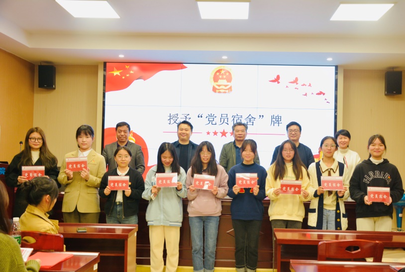 员工党员代表田玺如同志宣读《宿舍文明公约》,全体员工党员签订《永利3044集团官网员工党员〈宿舍文明公约承诺书〉》,全体党委委员为所有员工党员宿舍进行授牌。