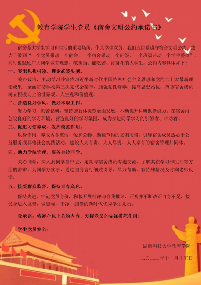 与会党员同志一致认为,签署公约、宿舍挂牌既是一份荣耀,更是一种责任,表示一定会紧跟党走、善于作为,深入学习贯彻党的二十大精神,发挥党员的先锋模范作用。