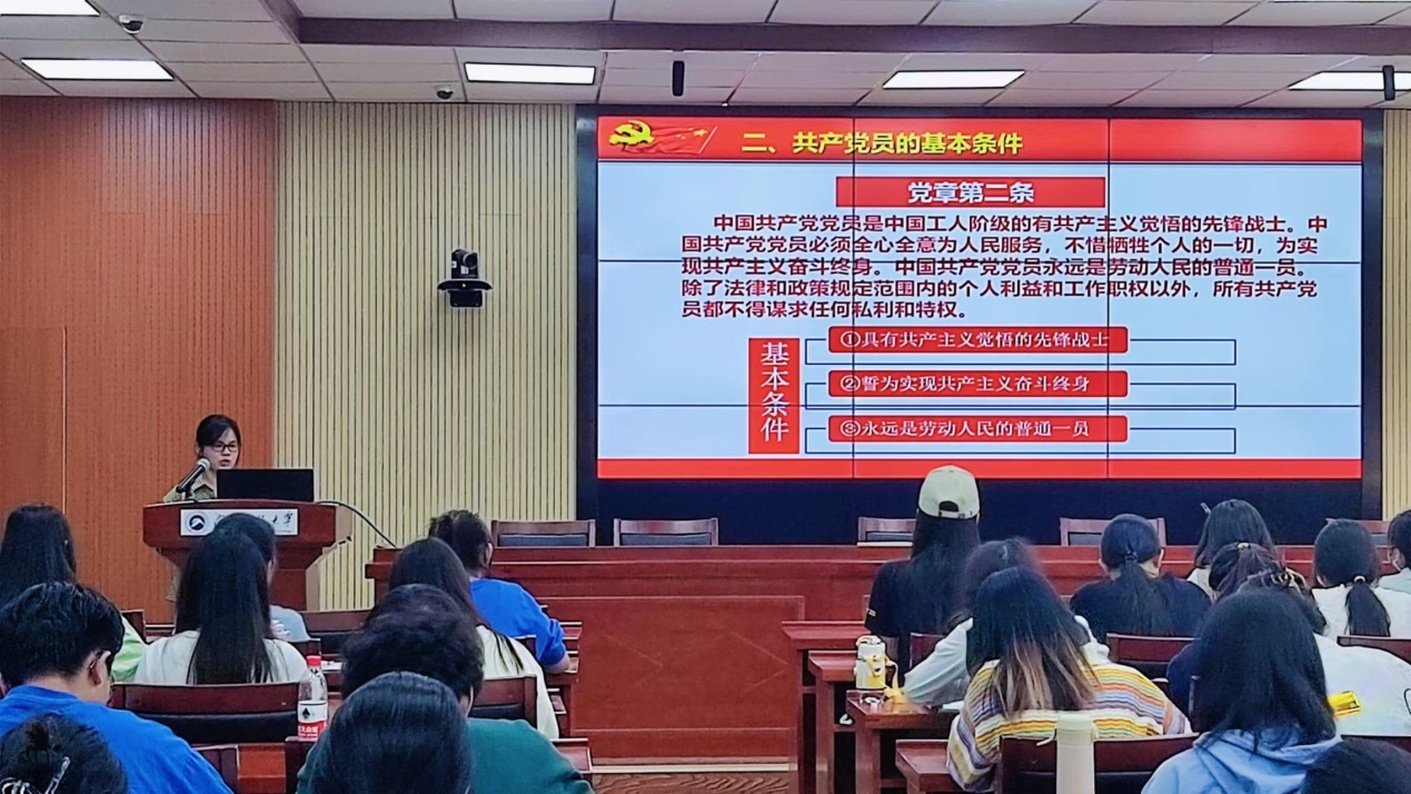 胡银华结合党章带领学员们了解申请加入中国共产党的条件,对共产党员的义务与权利作了详细的解读,详细讲解了发展党员工作程序、细则及其具体要求,希望学员们对照标准,创优争先,争取早日加入中国共产党。