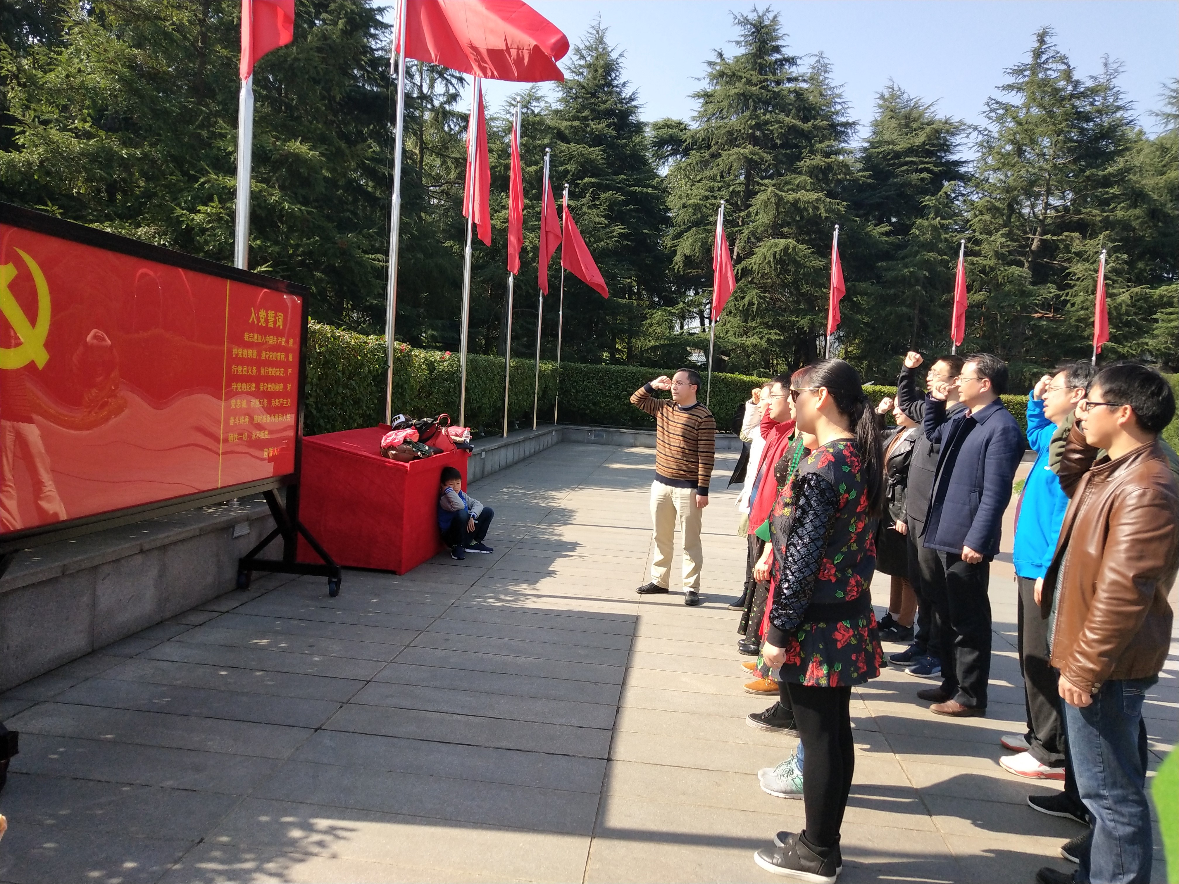 党员们在韶山毛主席铜像广场重温入党誓词