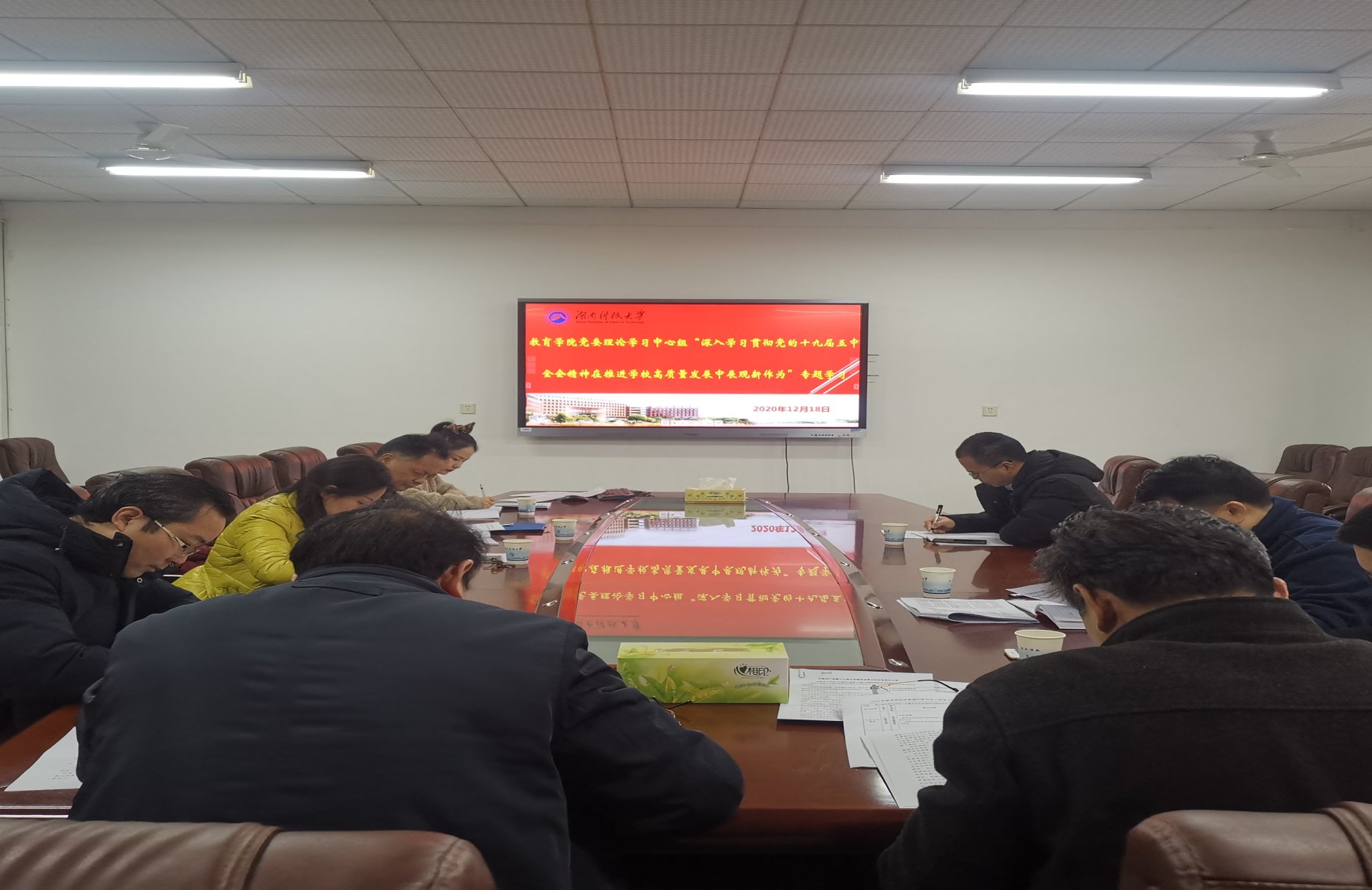 12月18日,公司党委理论学习中心组在八教208会议室组织集体学习,专题学习贯彻党的十九届五中全会精神。公司党委书记李炳煌主持学习。