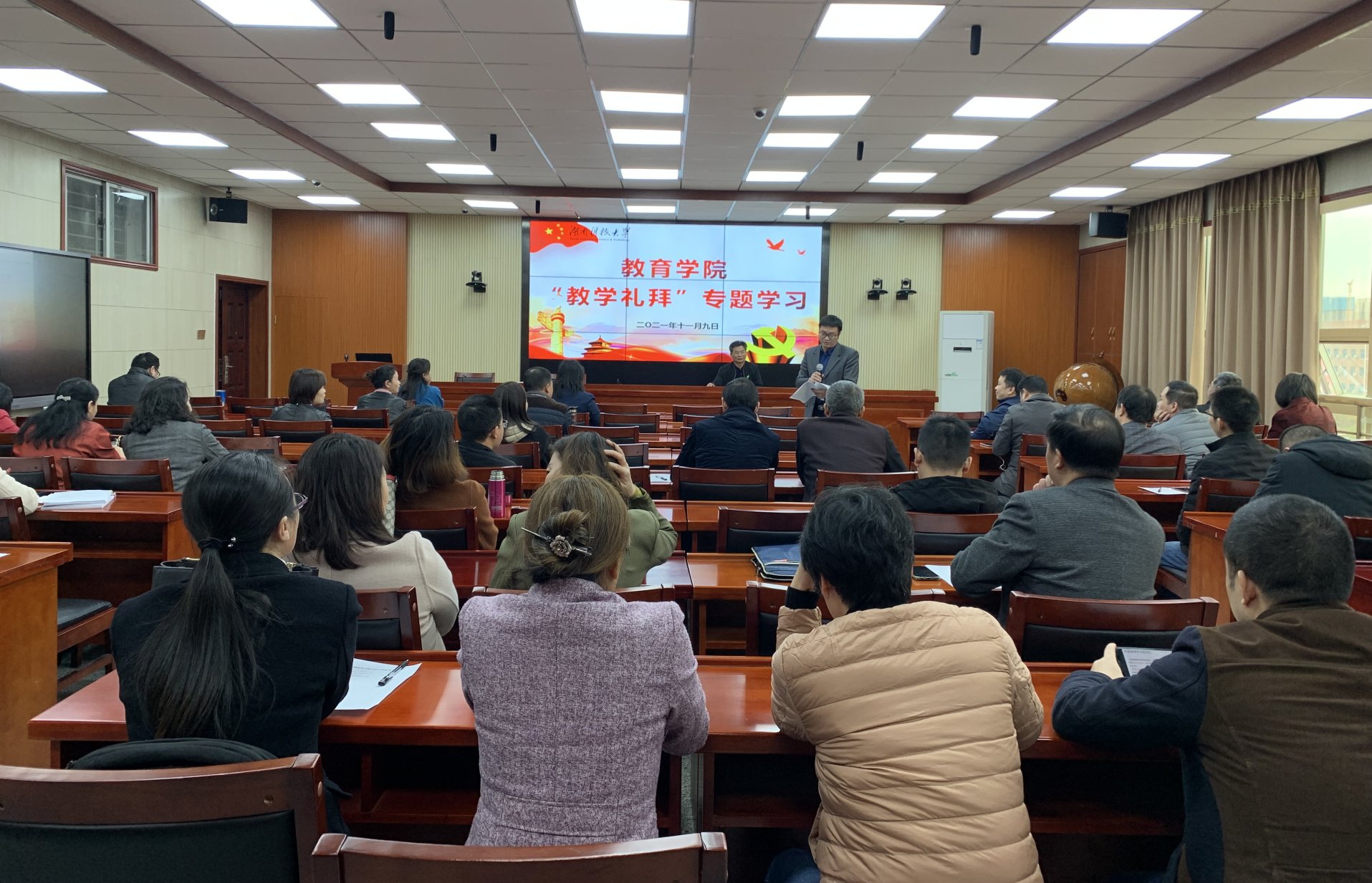 11月9日下午,永利3044集团官网在八教308会议室组织全院教职工开展“教学礼拜”专题学习。公司党委书记李炳煌主持。