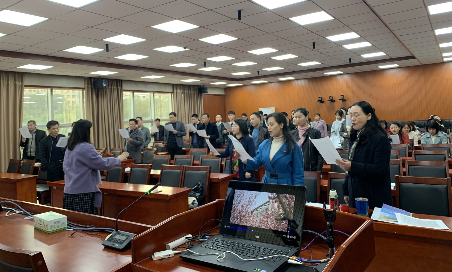 为促使教职工尽快熟悉、传唱和推广校歌、进一步激发爱校荣校情怀,公司特邀请专人现场教学,引领大家逐句练习,纠正音准。经过反复练习,老师们逐渐掌握校歌旋律,用自己诚挚的情感和悠扬的歌声展现出了公司积极向上的精神风貌。