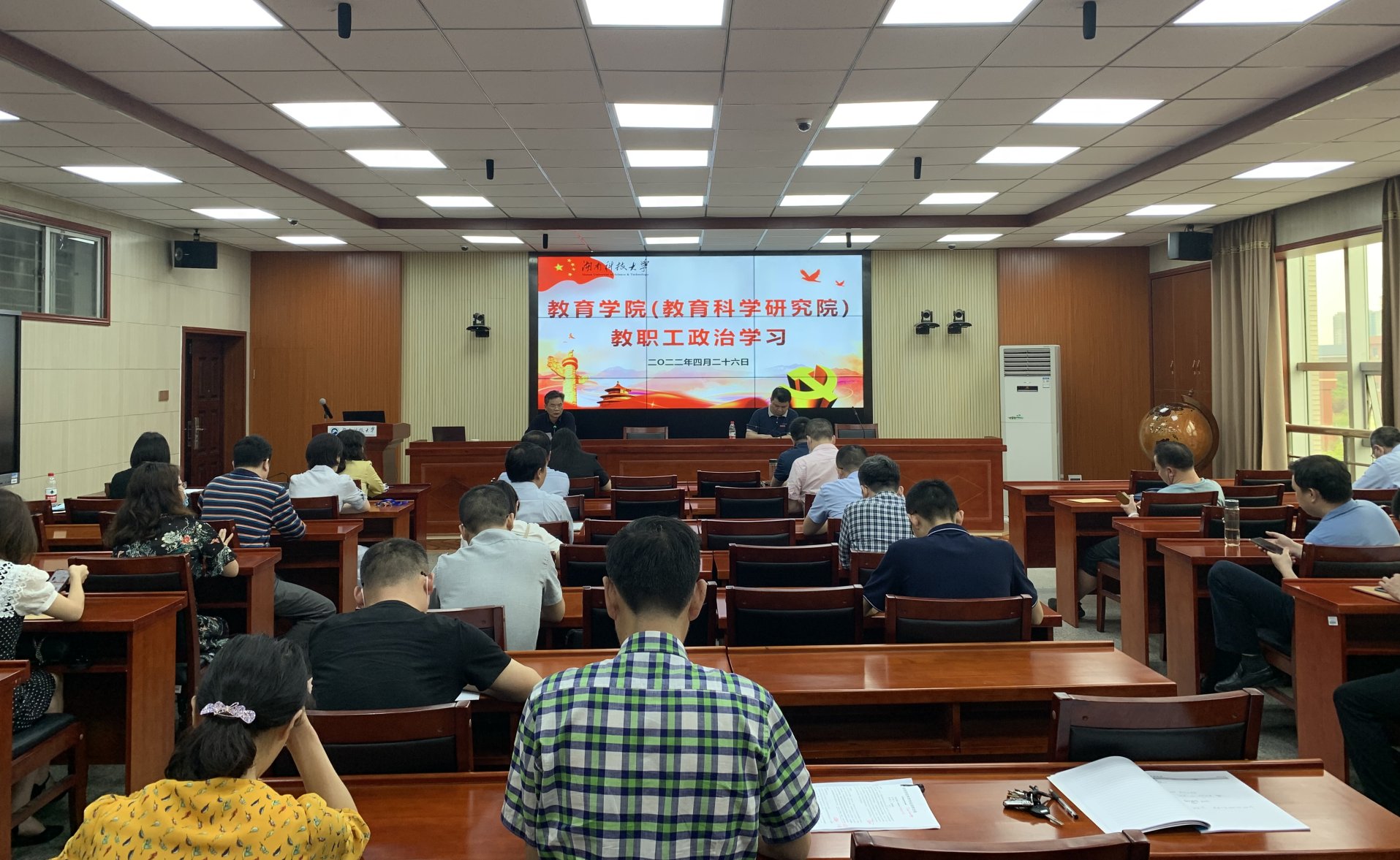 4月26日下午,永利3044集团官网(教育科学研究院)在八教308会议室组织全院教职工政治学习。公司党委书记李炳煌主持学习。