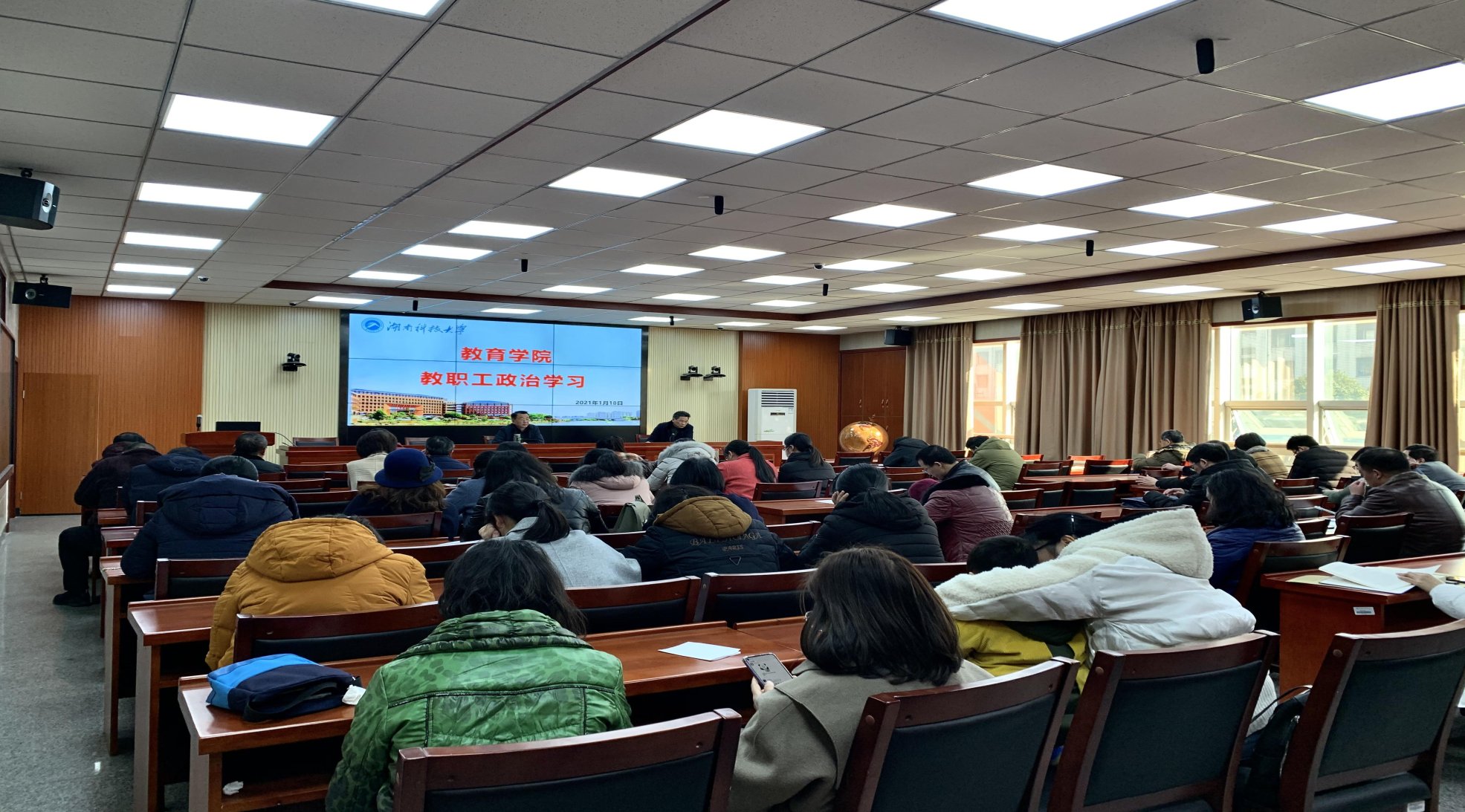 1月18日,公司党委在八教308会议室组织全院教职工政治学习。本次主要从法治建设等方面的内容进行学习。公司党委书记李炳煌主持学习。
