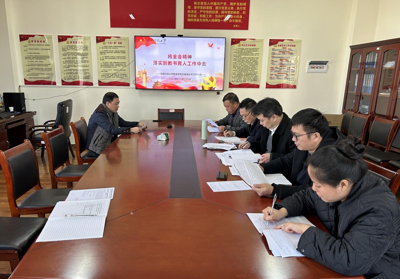 为进一步深入学习贯彻党的二十届三中全会精神,统一思想,凝聚力量,切实将全会精神落实到公司产品和各项工作中去,11月29日上午,公司党委理论学习中心组在敏行楼B301会议室举行“将全会精神落实到教书育人工作中去”专题集中学习。经理谭千保主持。