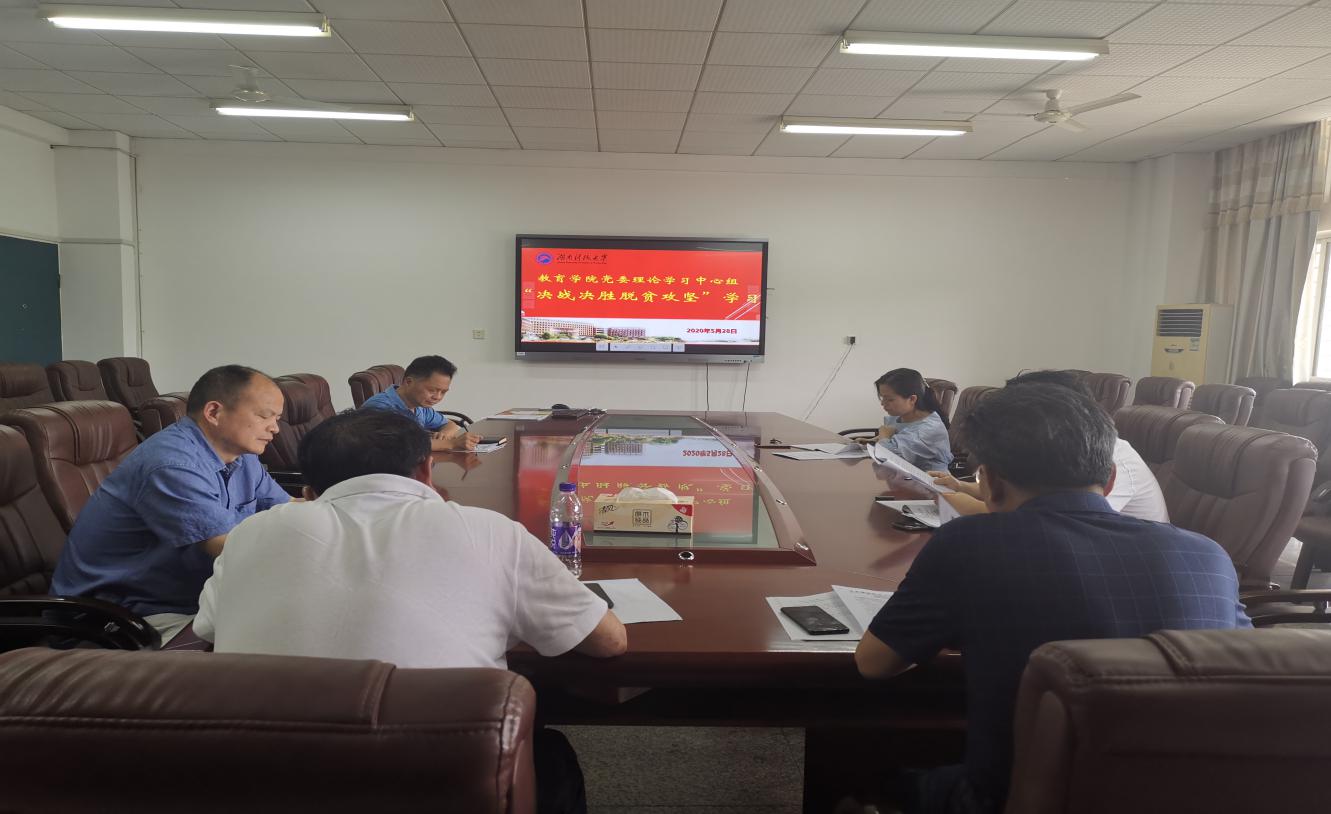与会人员认真学习领会习近平总书记在决战决胜脱贫攻坚座谈会上、在打好精准脱贫攻坚战座谈会上的重要讲话精神,学习《关于持续解决困扰基层的形式主义问题为决胜全面建成小康社会提供坚强作风保证的通知》、新华社关于学习贯彻习近平总书记在决战决胜脱贫攻坚座谈会重要讲话评论员文章、湖南省委学习贯彻决战决胜脱贫攻坚座谈会精神。周险峰在会上作了中心发言。与会人员围绕专题学习主题,结合教育实际,就“教育扶贫”开展了深入研讨。