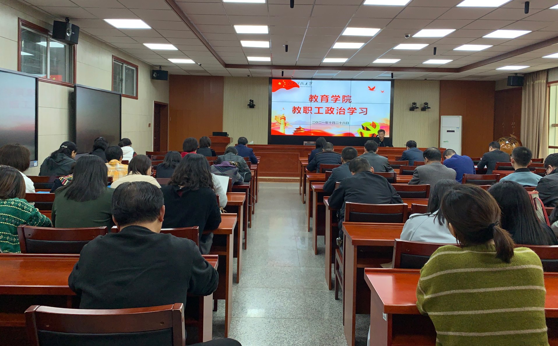 10月26日下午,永利3044集团官网在八教308会议室组织全院教职工政治学习。本次为校史、院史专题学习教育。公司党委书记李炳煌主持学习。