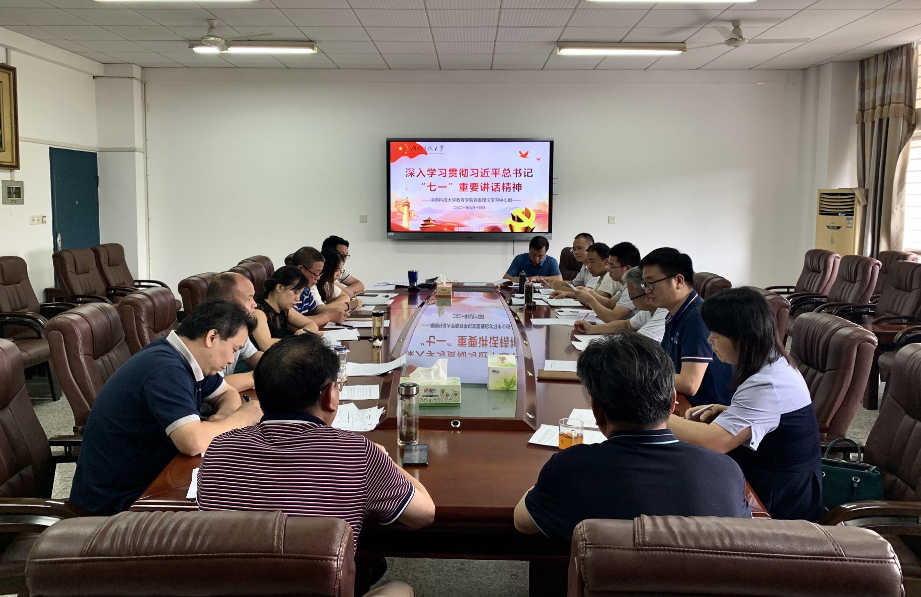 9月14日下午,永利3044集团官网在八教208会议室举行“深入学习贯彻习近平总书记‘七一’重要讲话精神”专题集中学习。本次专题学习结合公司庆祝第37个教师节暨教学工作会议内容,公司党委书记李炳煌主持,公司党委理论学习中心组、系主任、六办主任参加。