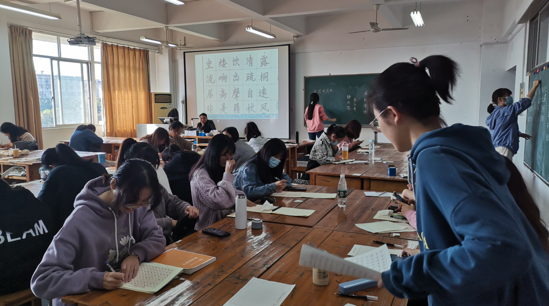 通过检查,实验中心本学期实验课表安排合理,教学过程均正常进行,教学秩序良好,实验室保障情况良好;当时在八教503三笔字训练室正在开展的《三笔字与简笔画》实验课堂上,任课教师教学态度积极认真,准备充分,课堂、实验教学质量整体较好、员工书写技能得到了充分的训练。