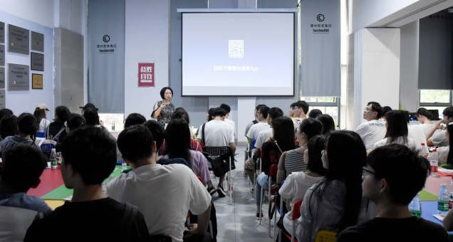 下午2:00公司师生驱车前往潭州教育(全球)教学服务中心。活动一开始,中心技术人员结合潭州教育实践经验,以“潭州课堂”APP为载体,从学员用户产品线和教师服务产品线两个方面展开介绍了在线教育运行机制。