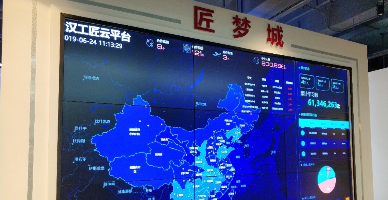 最后,大家观看了大汉集团的金桥数据能控中心,聆听工作人员的解说,领会以智慧课堂为载体,通过校企合作、产教融合、产学研一体及服务外包的形式培养高技能、高素质的专业技能人才面所形成大汉师创教育模式独到之处