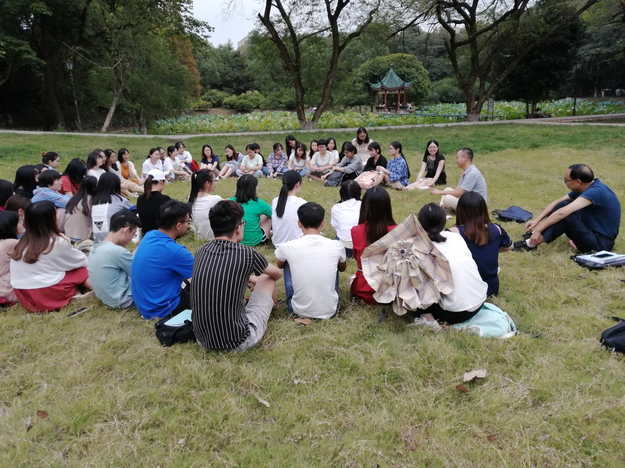为丰富教学形式、提升教学效果,2019年9月25日下午,公司张晓报老师在九教前草坪面向16教育学1-2班同学实施了一次户外教学。据了解,这是张晓报老师继实施讨论式教学后又一次在教学场所改革方面进行的尝试。公司教学督导李建生副教授进行了旁听和指导。
