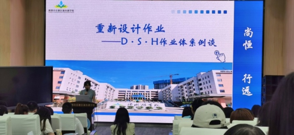 见习活动的第三个环节,是小学教育领域的热点问题研讨、讲座,主要由副董事长袁素芬和董事长曹峰主讲。副董事长、高级教师袁素芬结合国家的双减政策背景,系统地介绍了滴水湖小学的“D·S·H作业体系”设计的思路与内容。该体系从基础性作业和研究性作业两方面进行系统地设计,创造地提出了“卡片式”课内作业、“大阅读+语文”的混合式作业、“大阅读+数学”的递进式作业和“大阅读+常科”的并列式作业等等,生动展现了公司在落实“双减”政策要求的过程中如何确保员工学业质量的作业设计。