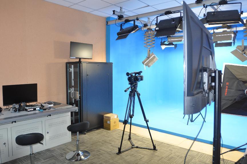 虚拟演播实训室面向教育技术学专业员工,开设视频节目制作、电视广播、访谈、单/双人新闻播报、录播和直播课等实验课。该实验室面积约29平方米,配有非线性编辑工作站、索尼Z280数字高清摄像机、虚拟演播室系统、网络编码器、图文包装系统、播音话筒、提词器、高清返监等设备。