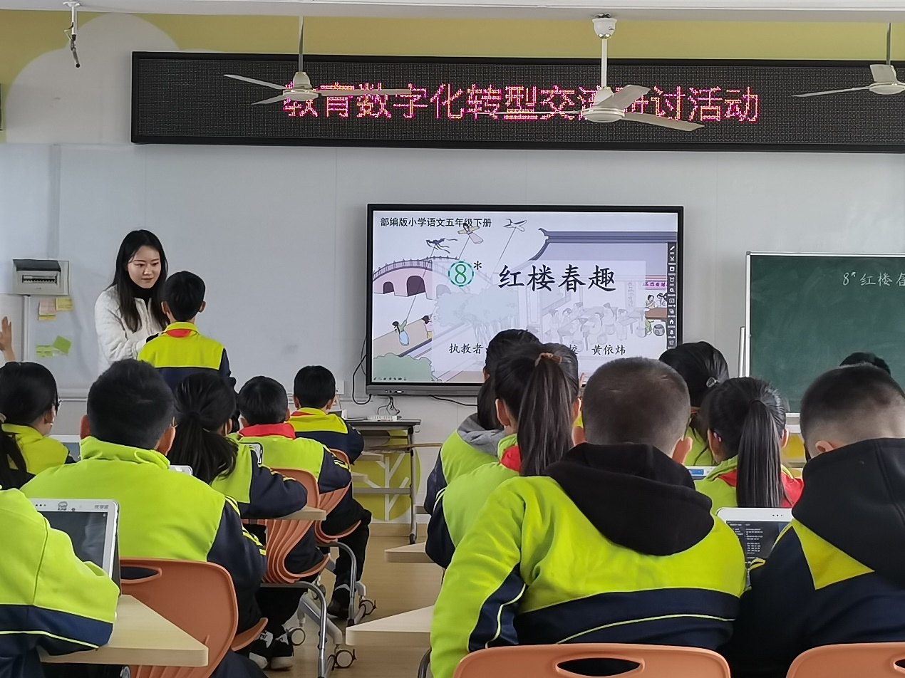 在语文平板课堂中,黄老师运用“优学派”中资源推送、展评讲解、视频播放等功能,将“优学派”灵活自如地运用在教学中,她鼓励同学们认真读课文体会人物形象,指导员工有感情地分角色朗读课文,邀请员工积极上台角色扮演,揣摩人物内心活动,为我们展现了一堂妙趣横生的语文课,引领我们重温经典,仿佛身临其境穿越到了《红楼梦》中的世界,充分体现了语文学科与信息化课程的深度融合。