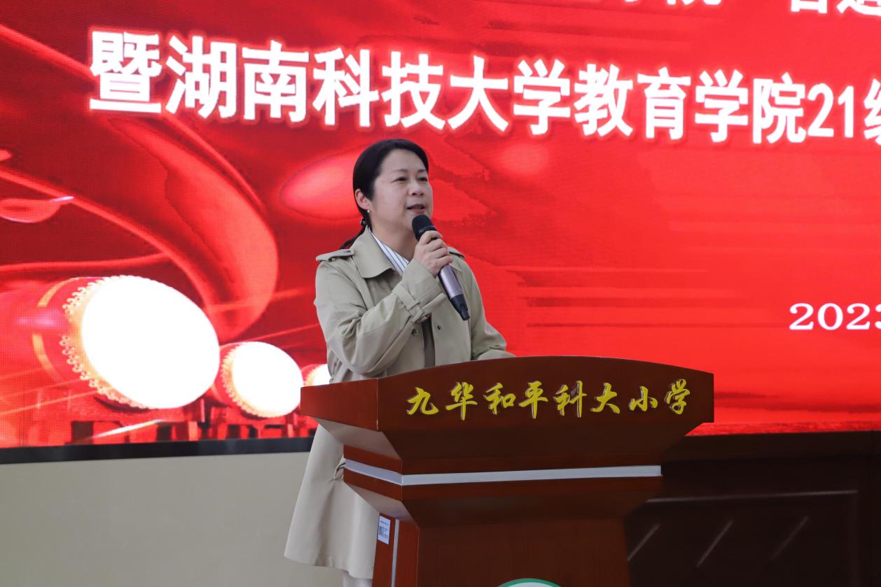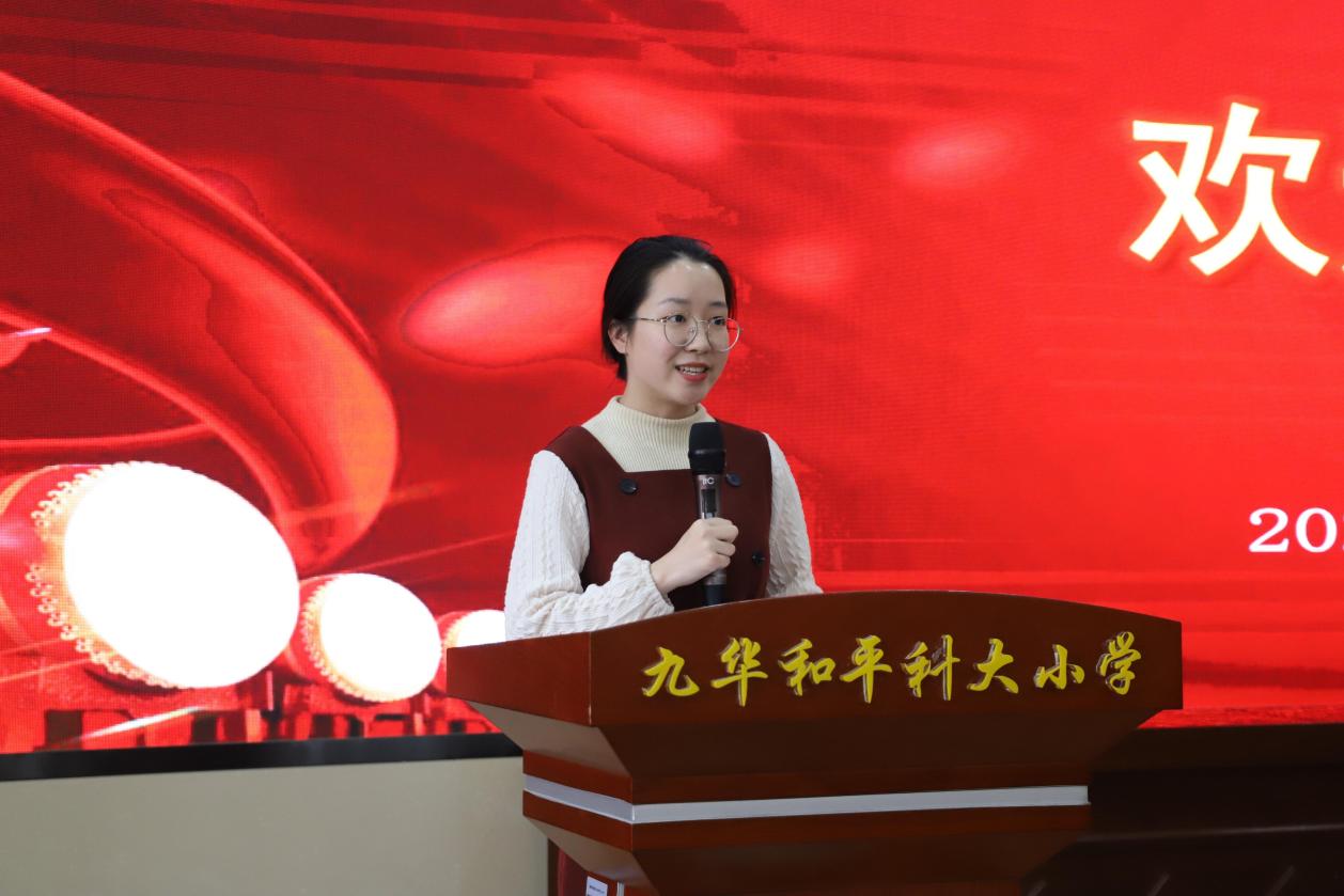 2019级本科生实习生韩聪慧同学代表往届实习生发言,她回顾了在九华和平科大小学的实习经历,为本次实习生提供了宝贵的实习经验。