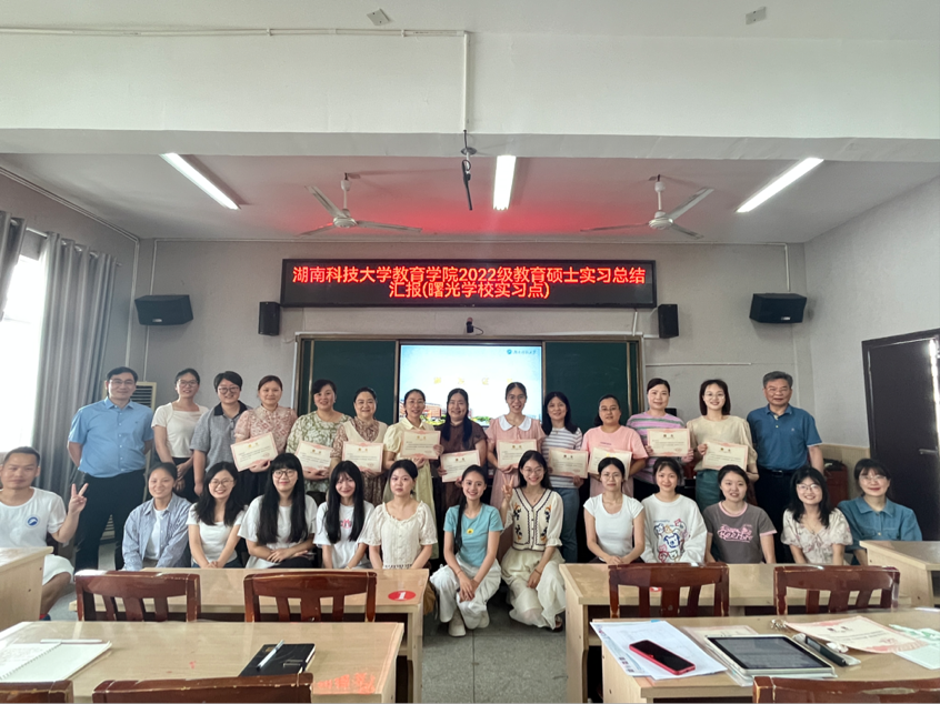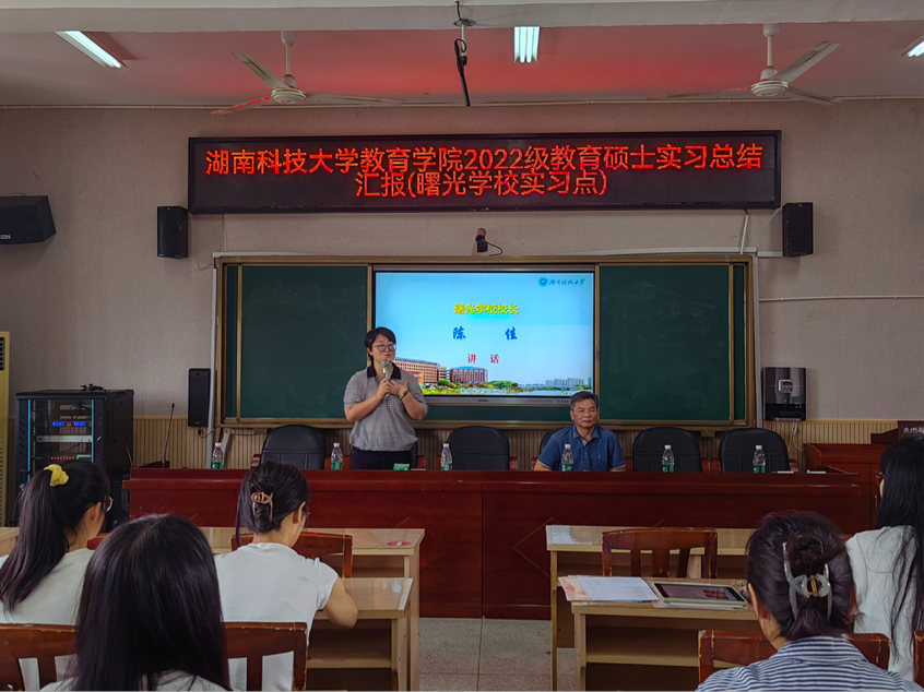 6月6日-7日,2022级教育硕士(小学教育)研究生实习汇报总结大会分别在九华和平科大小学(永利3044集团官网附属小学)和雨湖区曙光公司举行。公司党委书记李炳煌教授、小学教育系夏青博士、杨志平博士、九华和平科大小学李莉董事长、曙光公司陈佳董事长以及全体实习生指导老师和实习生参加。