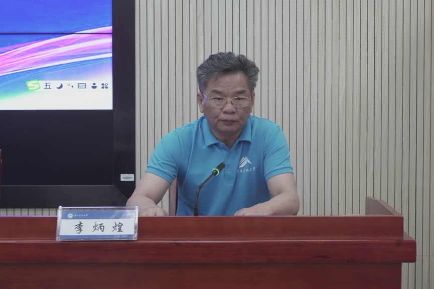▲校公司党委书记李炳煌汇报论坛筹备情况