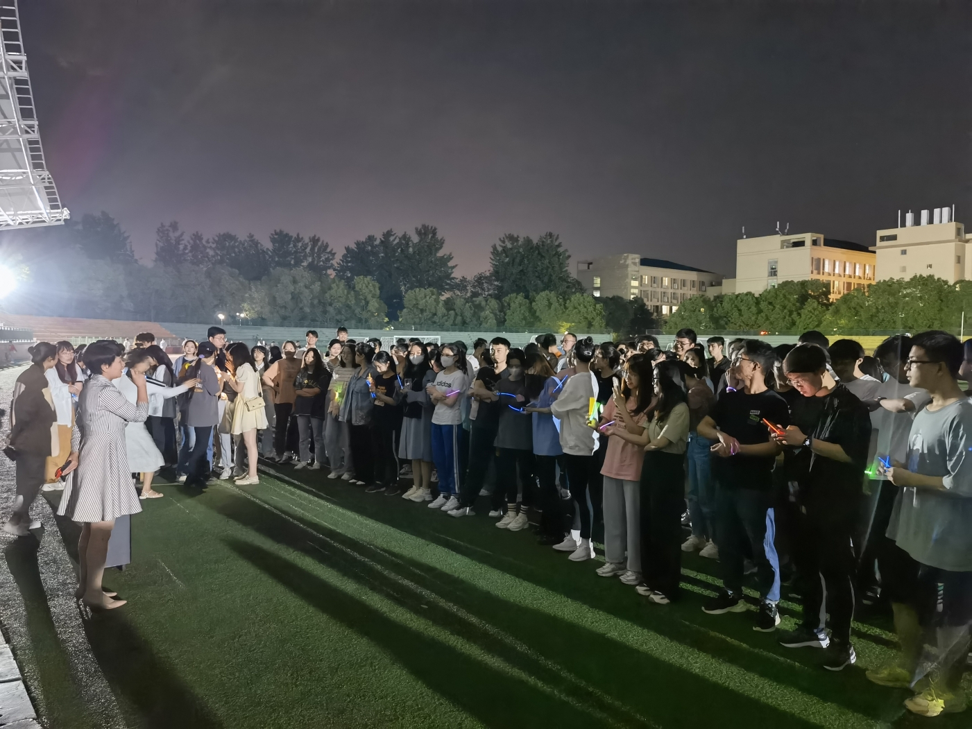 运动愉身心,强体利学习。为庆祝建团百年,引导广大青年以实际行动“喜迎二十大、永远跟党走、奋进新征程”。5月4日晚20时,由永利3044集团官网(教育科学研究院)团委研究生会主办的“健康·运动·陪伴”主题课外体育锻炼活动之“荧光夜跑”在北校田径场拉开帷幕。公司党委副书记刘婕,辅导员肖娟宜出席,来自各院170余名研究生参与此次活动。