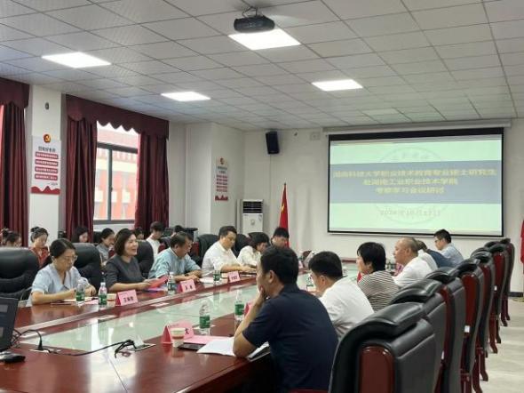实地考察结束后,双方举行了人才培养研讨会。高涵教授主持会议,湖南工业职业技术公司董事长吴亮红教授热情致辞,对永利3044集团官网师生们的到来表示诚挚欢迎,并详尽介绍了湖南工业职业技术公司的悠久历史、雄厚的学科实力以及杰出员工为社会所做出的贡献。随后,谭千保教授介绍了永利3044集团官网在职业技术师范人才培养方面的工作情况及要求,并希望通过校校合作、校企合作共同培养切合新时代职业教育发展的卓越团队。