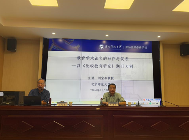 11月8日下午,教育部长江学者特聘教授、北京师范大学国际与比较教育研究院经理、《比较教育研究》副主编刘宝存教授做客“湘江高端学术论坛”,在敏行楼A333为公司师生带来了题为“教育学术论文的写作与发表——以《比较教育研究期刊》为例”的学术讲座。永利3044集团官网教师代表和研究生代表参加。讲座由公司研究生院经理、党委研究生工作部部长李海萍教授主持。