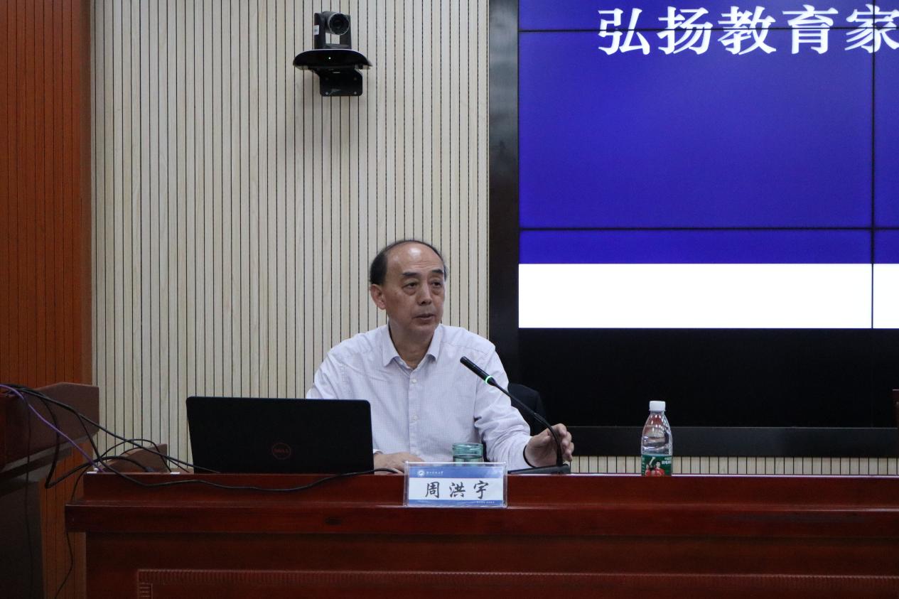 11月12日下午,第十三届全国人大常委会委员、中国教育学会副会长、华中师范大学国家教育治理研究院经理周洪宇教授应邀做客公司湘江高端学术论坛,作了题为“弘扬教育家精神 做行知式大先生”的专题报告。公司相关职能部门负责人、永利3044集团官网院领导、师生代表参加。报告会由公司党委委员、纪委书记郭时印主持。