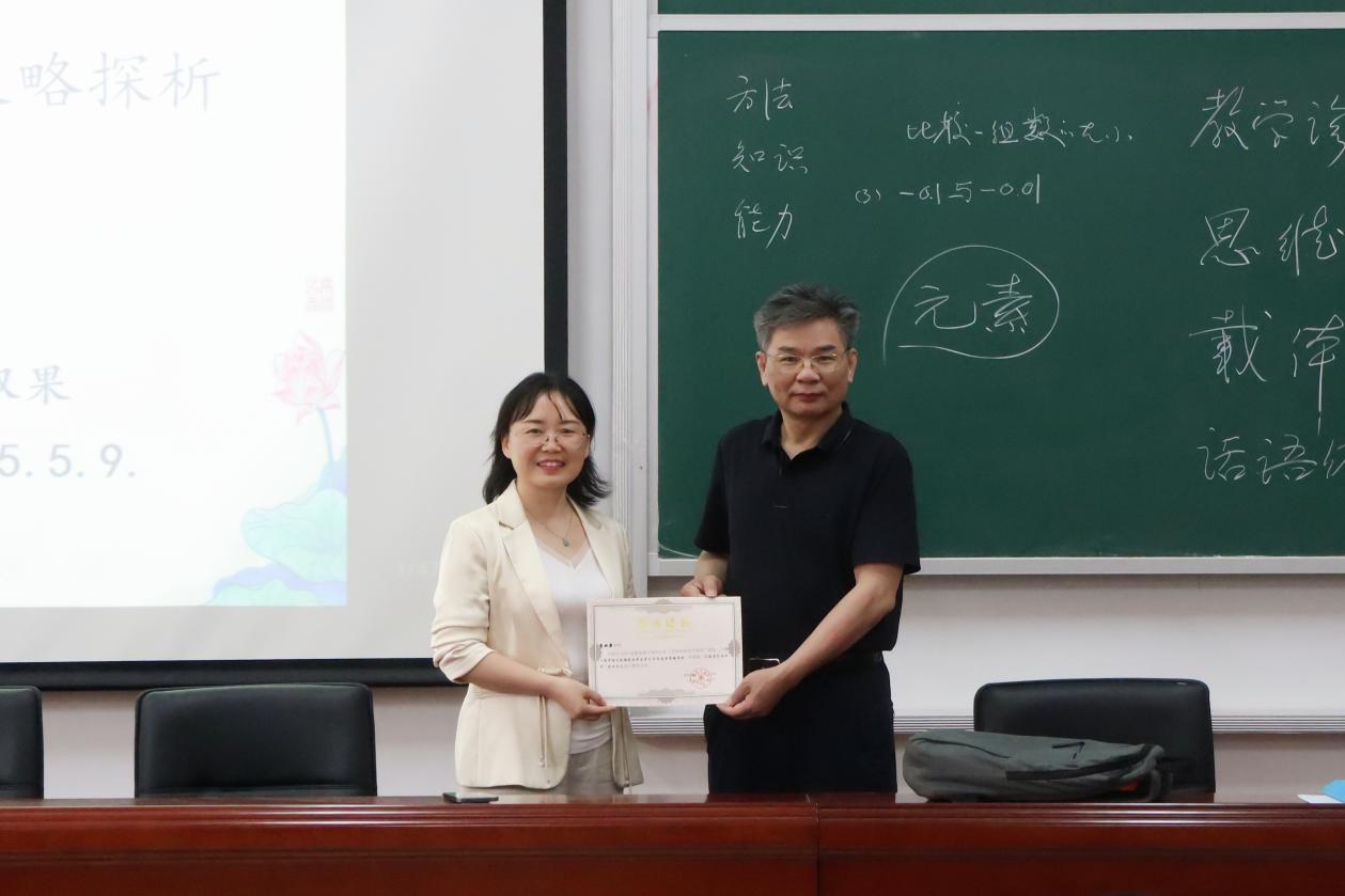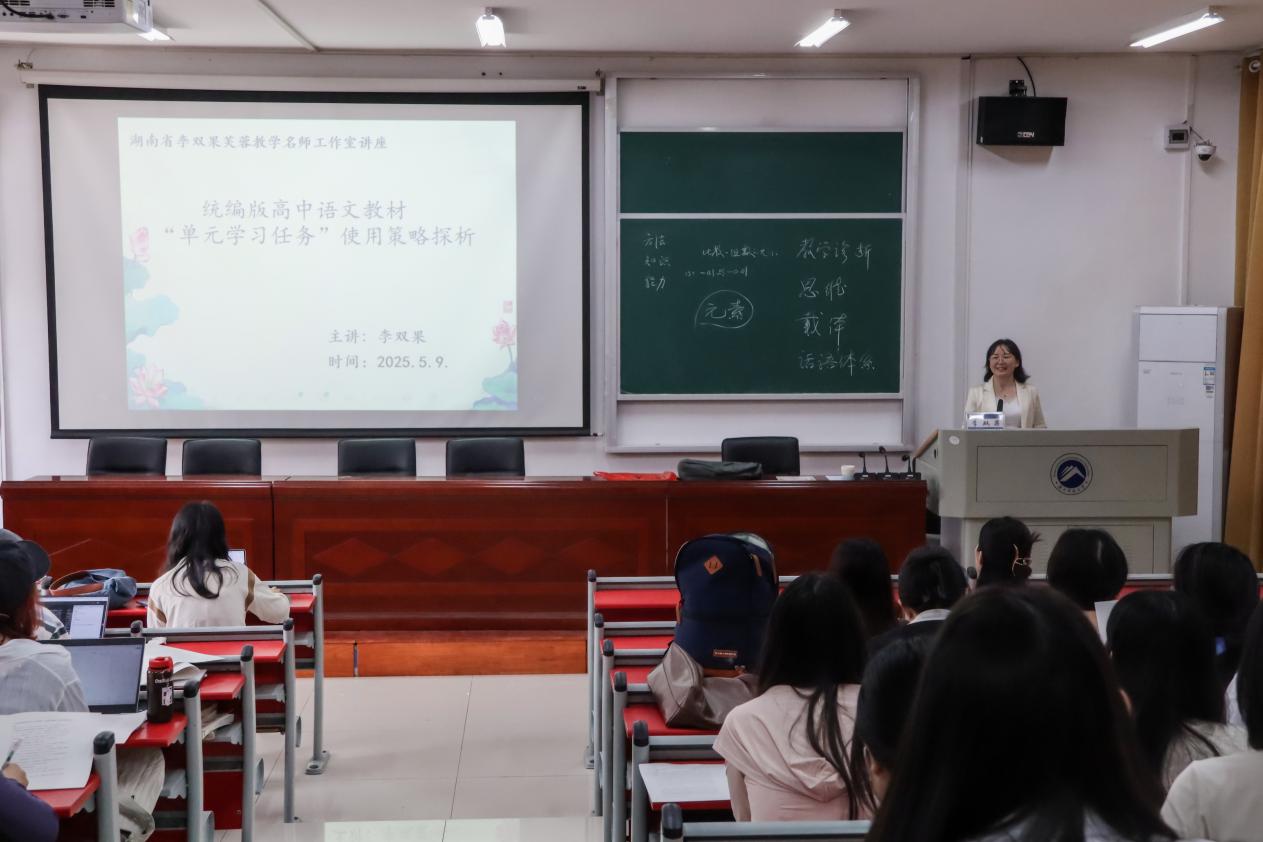 5月9日上午,“名师进研究生课堂”系列讲座第37讲在雨湖校区第二教学楼102教室举行。湖南省芙蓉教学名师、湖南省基础教育精品课评审专家、娄底市高中语文骨干教师、双峰一中“问题导引五环节”教学范式创建核心成员李双果老师为公司师生带来:“高中语文统编教材单元学习任务使用策略探究”主题讲座。公司2024级教育硕士研究生到场聆听,讲座由李炳煌教授主持。