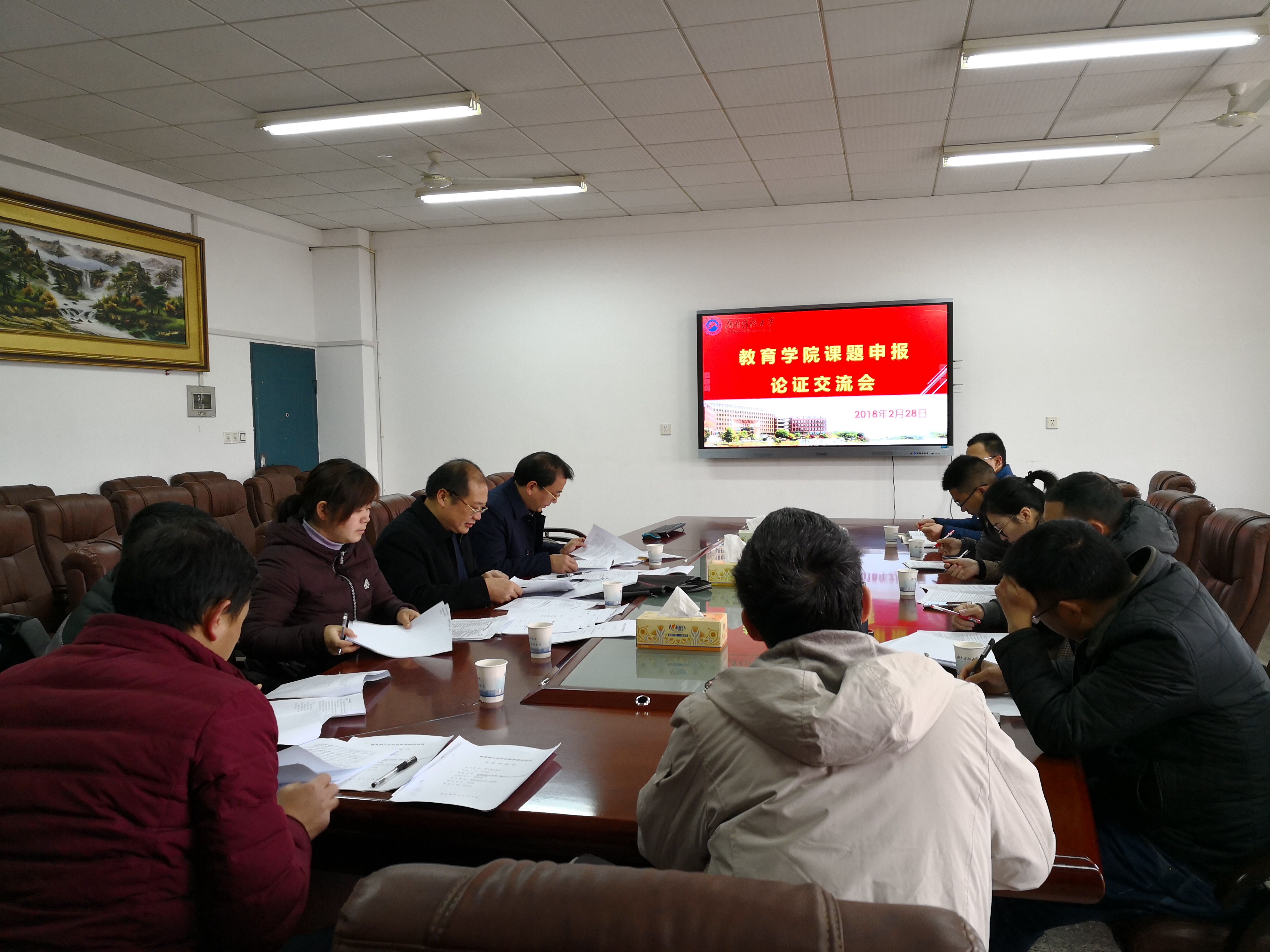 您所在的位置: 首页» 科学研究» 科学研究 公司组织召开2018年科研项目申报论证会议 时间:2018-03-03 00:00:00 中国·3044永利集团(集团)有限公司-官方网站 2018年2月28日,新学期伊始,公司组织召开了科研项目申报论证会,院领导和部分老师参加了此次学术活动。会议由李海萍经理主持,邀请罗建文教授出席并指导。会上,老师们就申报书的选题、论证、重点难点、研究基础、学术创新等内容与罗建文教授进行了深入交流和探讨,罗建文教授结合自身多年的研究经历和申报经验提出了许多宝贵的意见和建议,老师们受益匪浅,深受启发。此次会议为公司2018年度课题申报打下了坚实的基础。