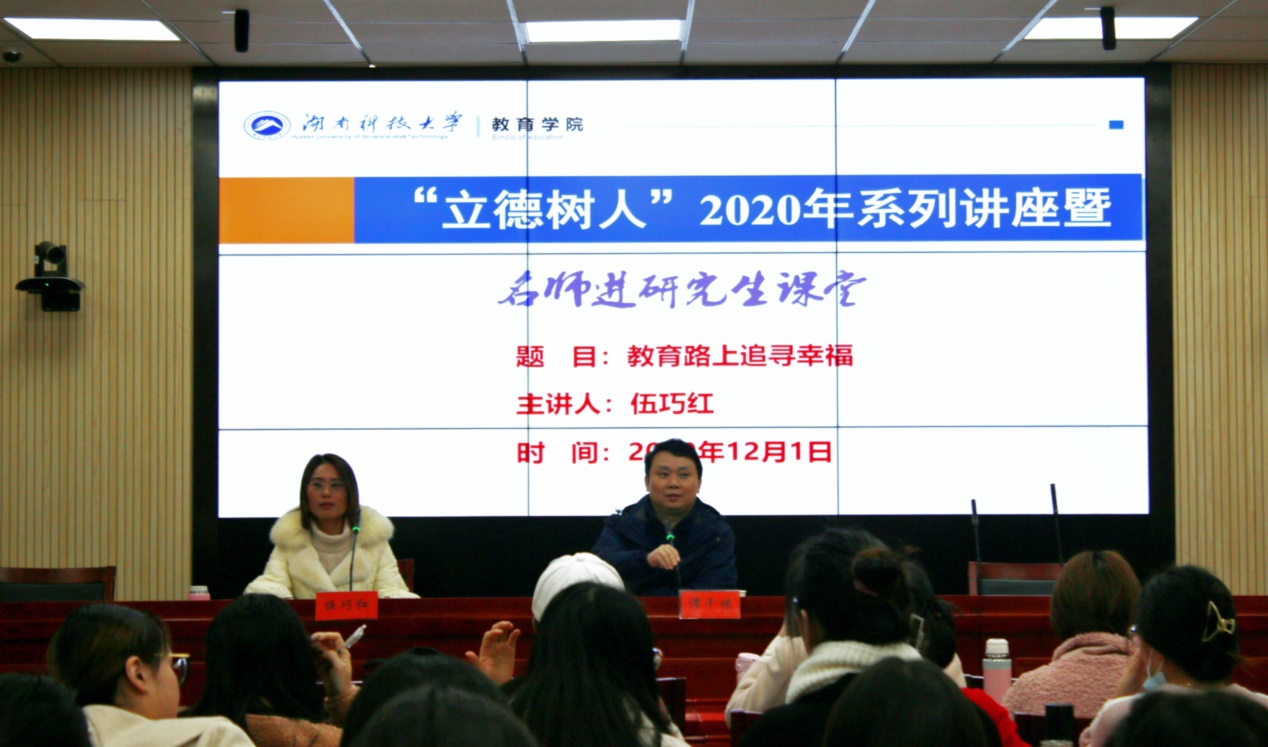 12月1日下午,全国优秀教师伍巧红老师应邀莅临公司,在第八教学楼308学术报告厅为公司师生带来“教育路上,追寻幸福”的主题讲座。讲座由永利3044集团官网副经理谭千保主持,永利3044集团官网研究生到场聆听。