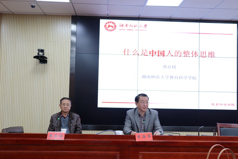 2018年11月16日下午,湖南师范大学教育科学公司博士生导师燕良轼教授做客“明湖教育论坛”,为公司师生带来题为“什么是中国人的整体思维”的学术报告。报告会由永利3044集团官网经理李海萍主持。
