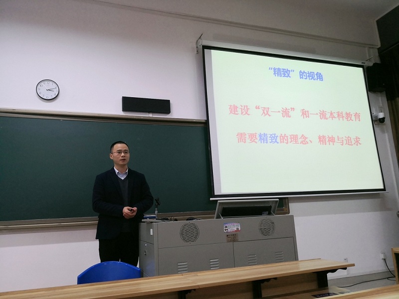 张晓报老师报告的主题是“论精致的大学”。他的报告从大学的理想图景是精致、大学的现实情况是粗放发展、大学的办学之路是从粗放走向精致三个方面展开。他认为,大学之精致包括三个方面:外在形态表现为校园环境与建筑,行为体现于大学的管理与服务,内在追求则涉及大学的核心职能即人才培养。最后,他提出,对于大学而言,“无精致则无一流环境,无精致则无一流管理,无精致则无一流教学,从而也就无一流大学”。