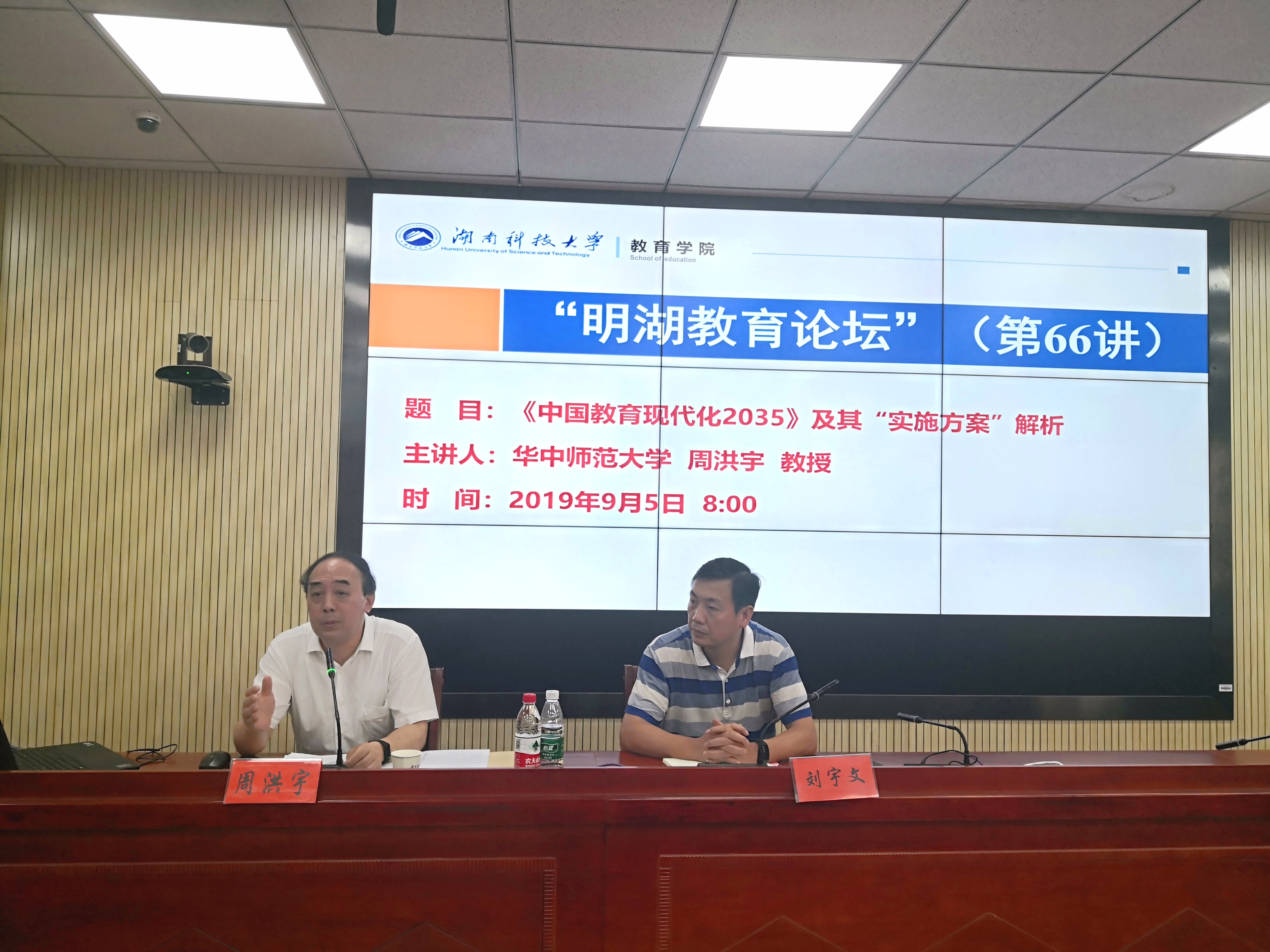 2019年9月5日上午,华中师范大学博士生导师、国务院学位委员会教育学学科评议组成员、中国教育学会副会长、中国教育发展战略学会副会长周洪宇教授做客“明湖教育论坛”,为公司师生带来题为“《中国教育现代化2035》及其‘实施方案’解析”的学术报告。报告会由校纪委书记刘宇文主持。